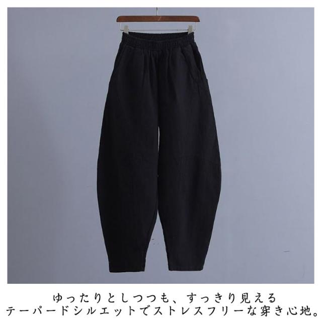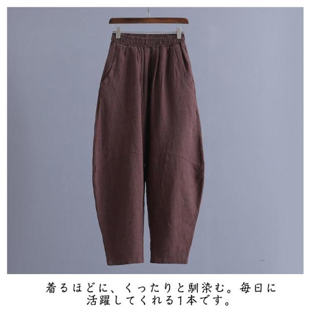 リネンパンツ バルーンパンツ 麻パンツ 春 夏 レディース ワイドパンツ 切り替え カーブパンツ サルエルパンツ ハロンパンツ リラックスパンツ 30代 40代 50代 ロング ボトムス ウエストゴム 美脚 通勤 オフィス カジュアル ナチュラル