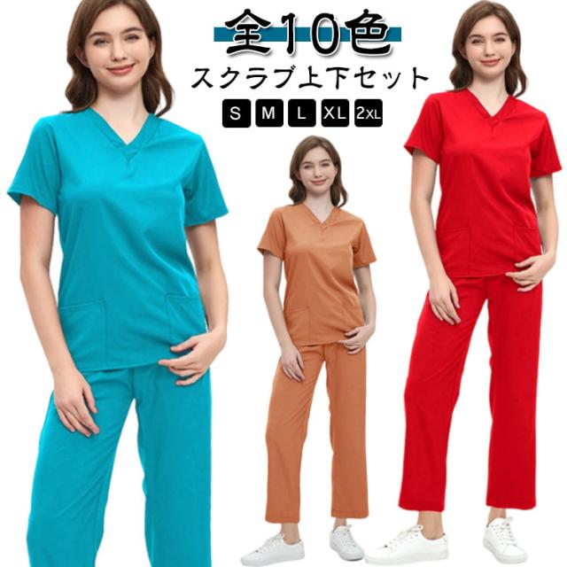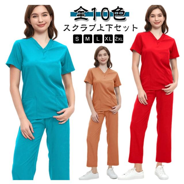 白衣 スクラブ レディース ユニフォーム 上下セット 作業服 パンツ 女性用 医療白衣 半袖 クリニック 医療 病院 ナース 看護師 介護士 整体師 ナース服 大きいサイズ 吸汗 速乾 医師 手術着 介護士 制服 医療 おしゃれ 歯医者 サロン