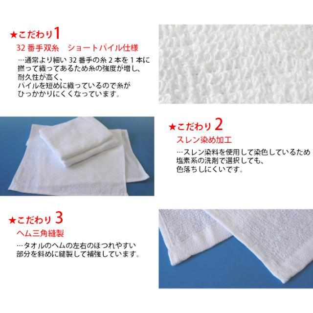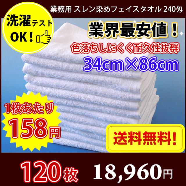 【送料無料】同色120枚セット 長持ちタオル 業務用 スレン染め フェイスタオル 240匁(白・ホワイト)