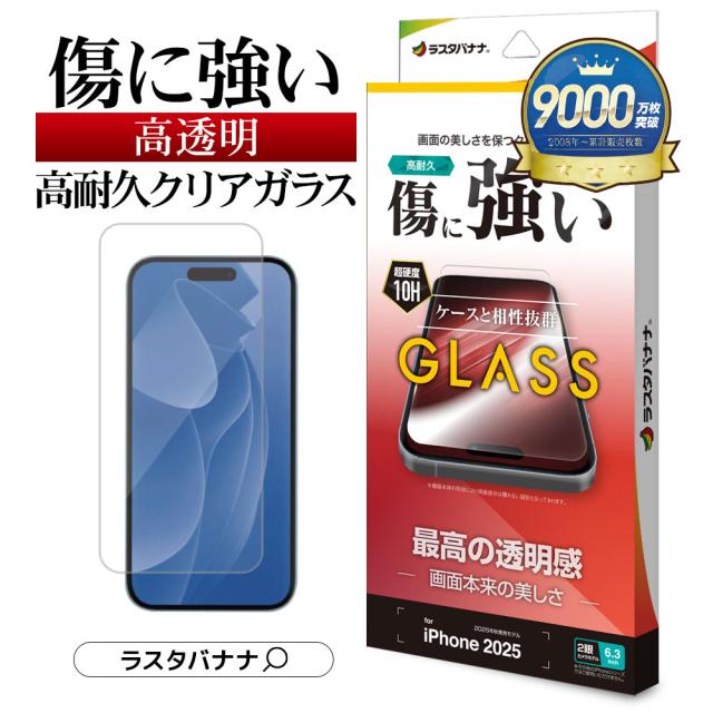 iPhone17 iPhone17 Pro ガラスフィルム 平面保護 高光沢 高透明 クリア 傷に強い 0.33mm 硬度10H 貼り付けガイド アイフォン 保護フィルム ラスタバナナ