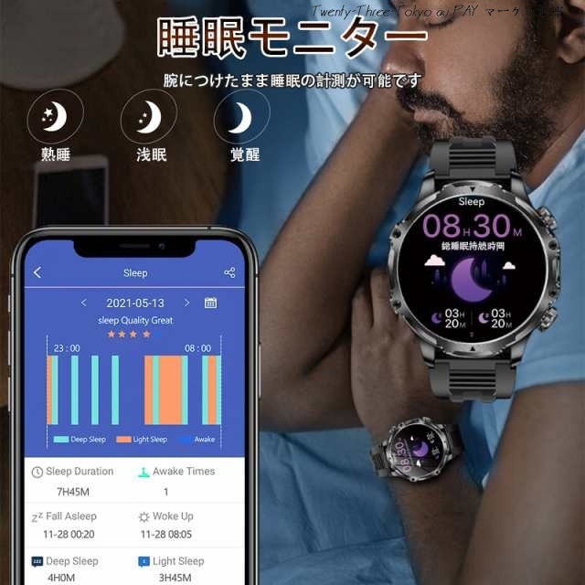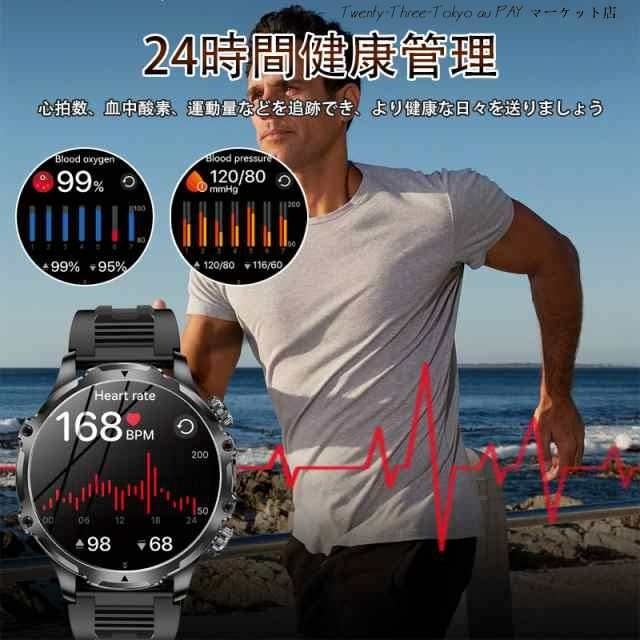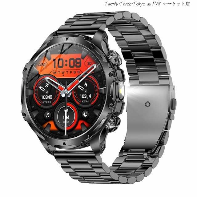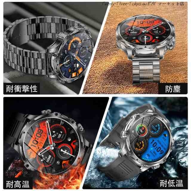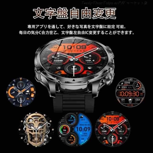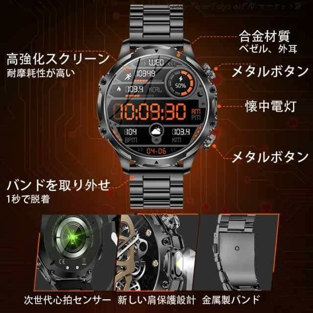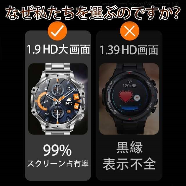【卓越な品質と洗練されたデザイン】 このスマートウォッチ 大画面は、CNC切削技術による鮮やかな質感と、輝きと奥行きを際立たせる特徴的な時計ベゼルのデザイン、繊細なラインが魅力です。更に、軍用様のボディには傷がつきにくく1.9インチHDのAMOLEDディスプレイ(416*416PPi)が組み込まれており、太陽光の40%を反射する性質があり、フレームなしのディスプレイで大きなフォントで屋外でも老眼の方でも情報やデータが見やすく表示されます。滑らかなタッチスクリーンと機械音の回転式リューズの双方で操作が可能です。美しさと実用性(耐熱性、耐衝撃性、耐水性)が見事に融合したこの高級でスタイリッシュな腕時計 メンズは、ビジネスシーンはもちろんプライベートシーンでも活躍いたします。洗練されたデザインと優れた機能性で、ぜひご検討いただきたい逸品です。