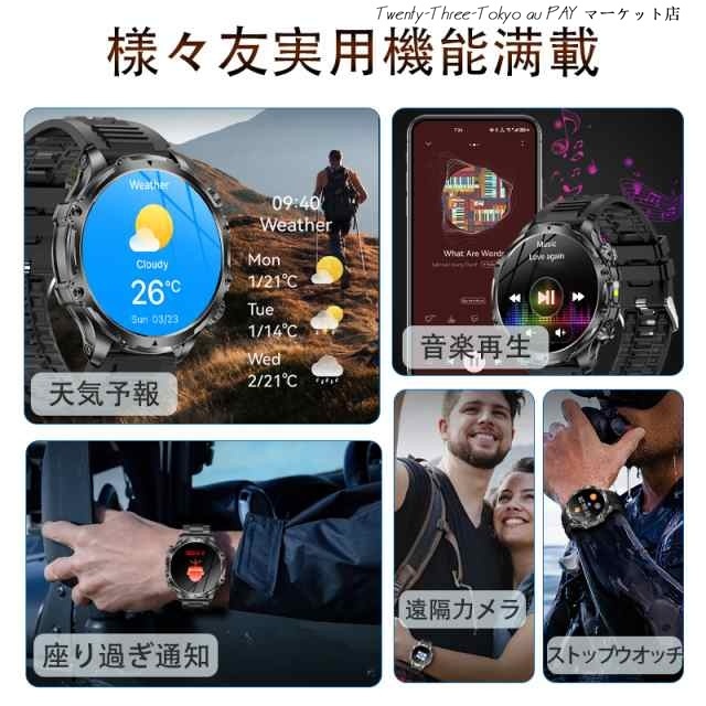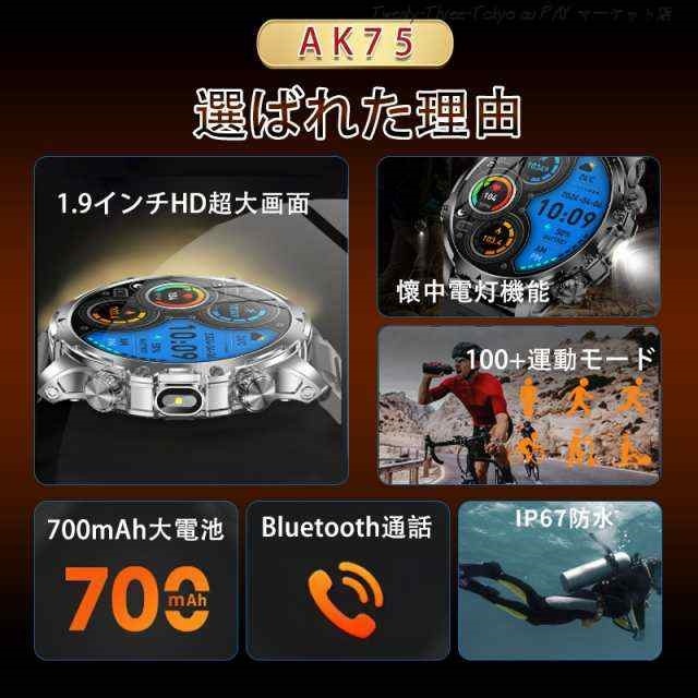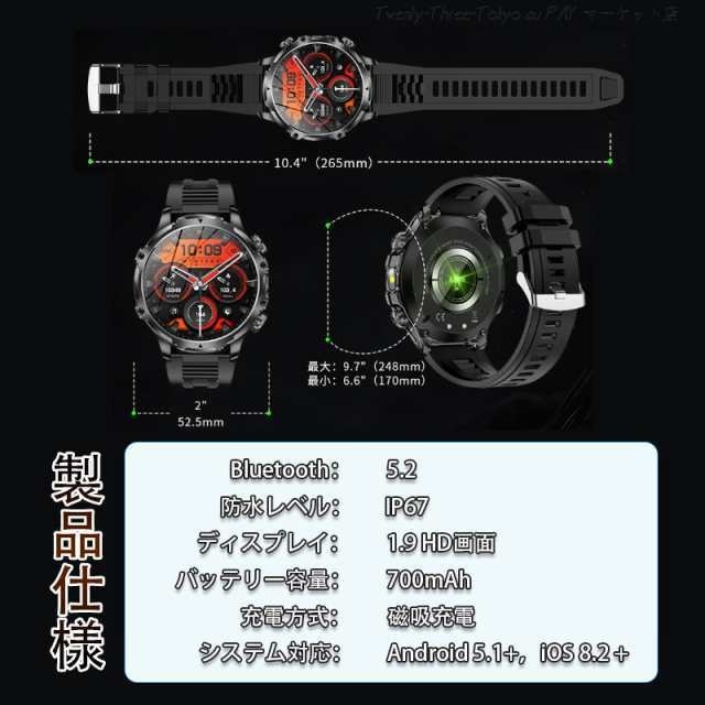 スマートウォッチ メンズ 2026 軍用規格 iPhone アンドロイド対応 丸型 1.9インチ超大画面 smart watch 血圧 血中酸素測定 歩数計 活動量計 通話機能付き 100種類運動モード 腕の懐中電灯 耐衝撃 IP67防塵防水 長持ちバッテリー 腕時計 父の日 プレゼント