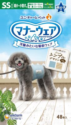 【16個セット】ユニ・チャームマナーウェア 男の子用 モカストライプ・ライトブルージーンズ SSサイズ 48枚