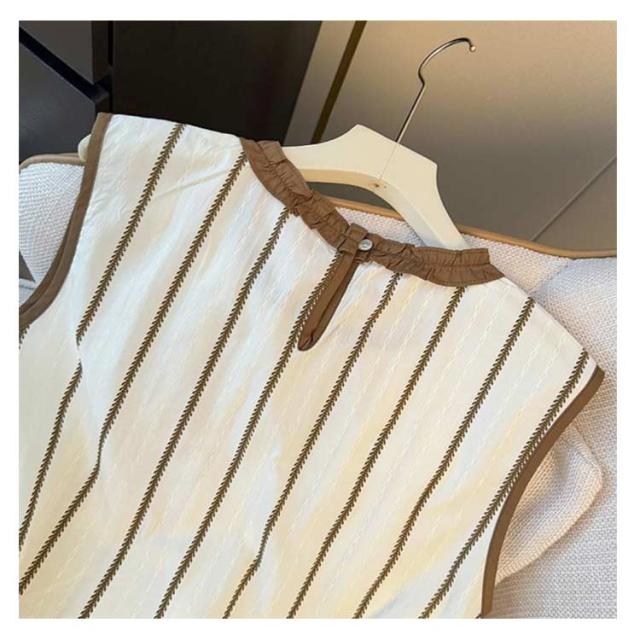 シャツ レディース トップス シャツ ブラウス ノースリーブ ストライプ クールネック タンクトップ プルーオーバー ゆったり きれいめ おしゃれ 夏 無地 シンプル 夏用 オフィス フォーマル 薄手 30代 20代 ブラウス 40代