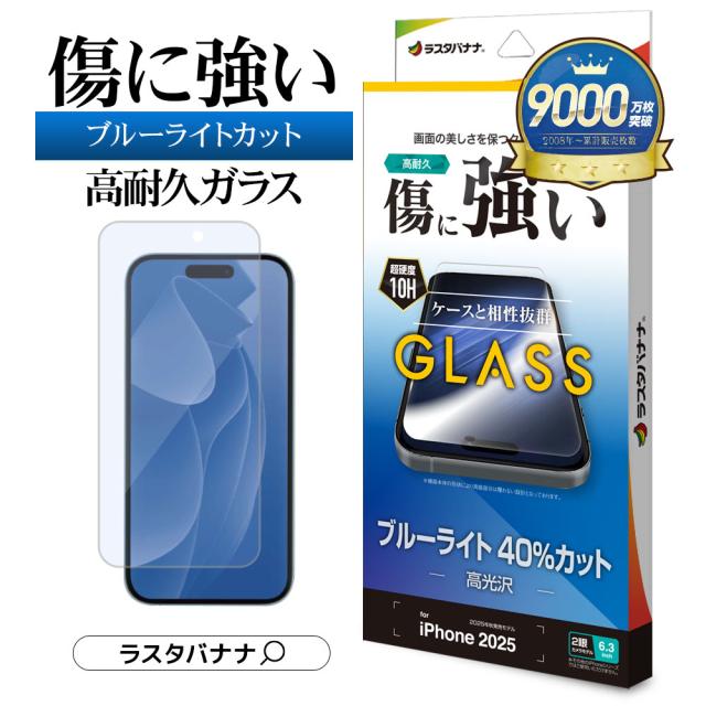 【送料無料】iPhone17 iPhone17 Pro ガラスフィルム 平面保護 ブルーライトカット 高光沢 透明 クリア 貼り付けガイド 傷に強い 0.33mm 硬度10H アイフォン 保護フィルム ラスタバナナ GE4865IP5A GE4933IP5B