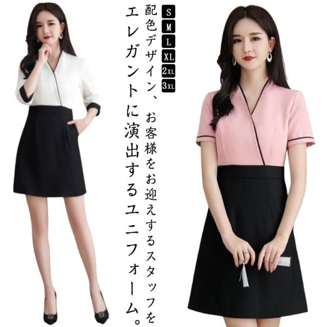 半袖 ヘッドスパ 制服 ワンピース ユニフォーム 作業着 サービス 美容師 女性用 配色 エステサロン 受付 サロン 七分袖 エステ サロンユニフォーム エステ 歯科 美容 クリニック 作業服 エステワンピース おしゃれ S M L XL 2XL 3XL