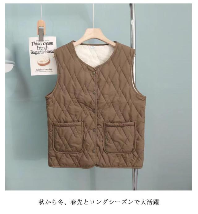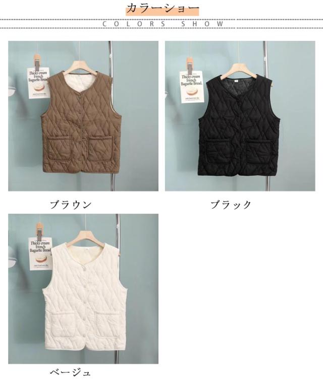 インナーベスト ノースリーブ 裏起毛 重ね着 ポケットあり Vネック レディース 薄い 前開き キルト キルティング レイヤード 中綿 冬服 保温性抜群 軽い 防寒 袖なし 冬 祖母 お祝い