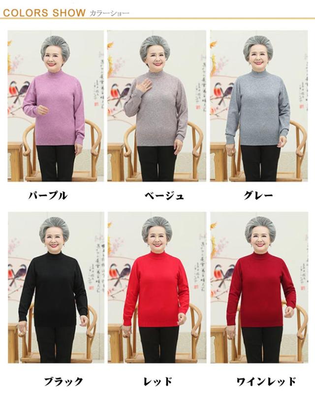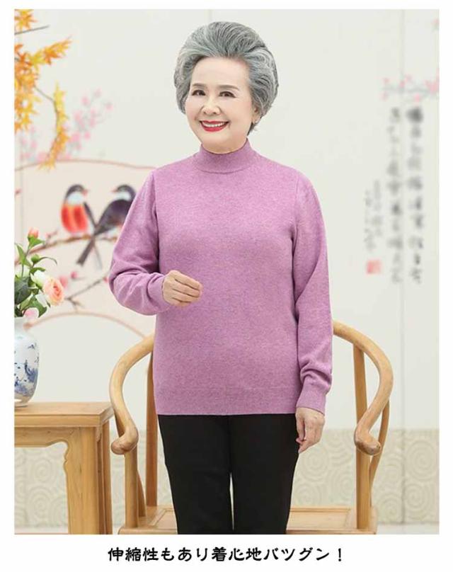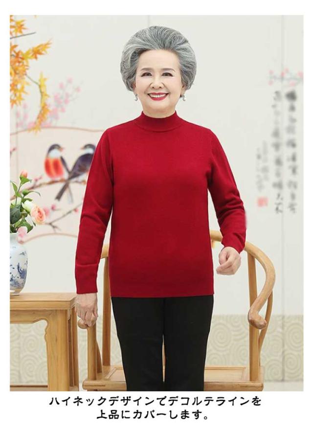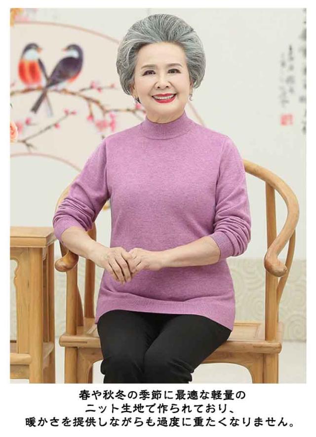 モックネック 高齢者 薄手 シニアファッション ニットセーター シニアファッション ニットプルオーバー 春 70代 レディース 80代 ハイネック 60代 50代 婦人服 無地 シンプル プレゼント ギフト 誕生日 秋 ミセス 祖母 おばあちゃん お年寄り ニットトップス 老人 秋物