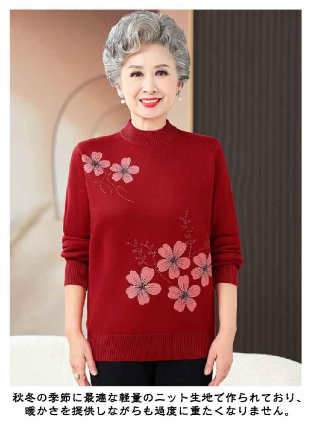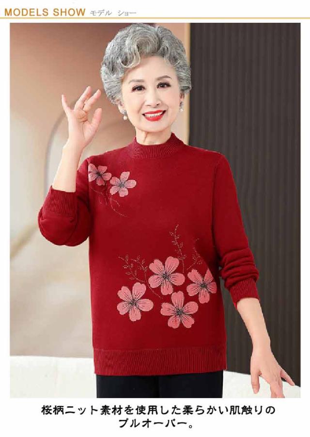 お誕生日 おしゃれ レディース ニットセーター 長袖 暖かい シニアファッション 桜柄 ギフト 婦人服 裏ボア 80代 秋冬 60代 90代 おばあちゃん 防寒 寒さ対策 節電 敬老の日 プレゼント 老人 ニットセーター ミセス 祖母 お年寄り 高齢者 70代 秋物 秋服 冬物