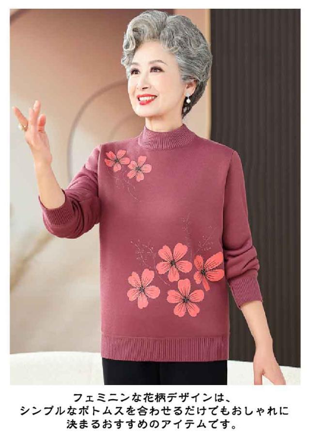 | 高齢者向け、秋冬用ニットセーター登場します。桜柄 ニット素材を使用した柔らかい肌触りのプルオーバー。伸縮性もあり着心地バツグン! 秋冬の季節に最適な軽量のニット生地で作られており、暖かさを提供しながらも過度に重たくなりません。 裏側にはボアがついて二重にあたたかいです。 クルーネックデザインでデコルテラインを上品にカバーしつつ、花模様が華やかさをプラスします。 フェミニンな花柄デザインは、シンプルなボトムスを合わせるだけでもおしゃれに決まるおすすめのアイテムです。 | |