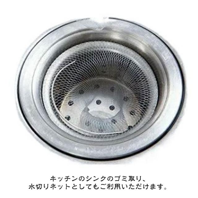 | 衛生的でお掃除ラクラク♪ お風呂の排水溝にかぶせて使う髪の毛取りネット600枚入りです。 キッチンのシンクのゴミ取り、水切りネットとしてもご利用いただけます。 伸縮する網タイプなのでかんたんに取り付けができ、そのまま捨てることができ、お手入れもかんたん。 目皿サイズ(円形もの)直径14cmまで対応 ストッキングタイプで簡単に被せて設置できます◎ 排水性も高く細かいゴミもしっかりキャッチ◎ | |