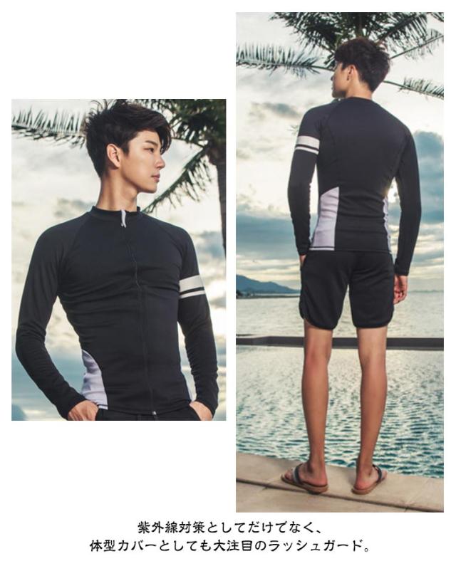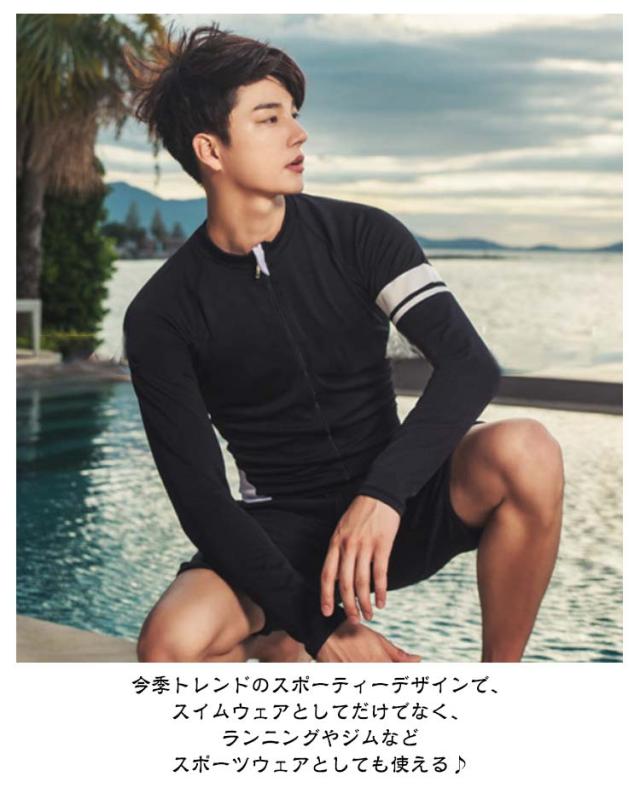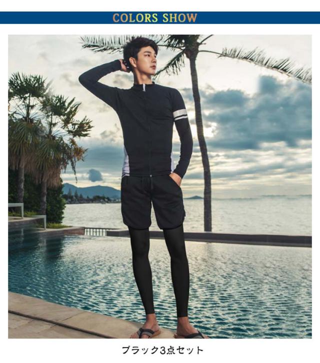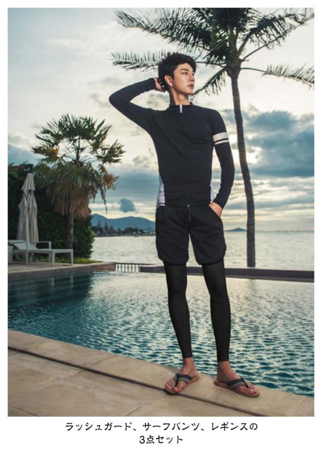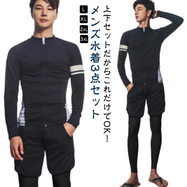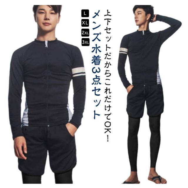 | メンズ水着3点セット L-3XL 上下セットだからこれだけでOK! オシャレにきまる♪ ラッシュガード、サーフパンツ、レギンスの 3点セット 今季トレンドのスポーティーデザインで、 スイムウェアとしてだけでなく、 ランニングやジムなど スポーツウェアとしても使える♪ 紫外線対策としてだけでなく、 体型カバーとしても大注目のラッシュガード。 スポーティーラインとブラックカラーで 引き締め見た目効果抜群です♪ | |