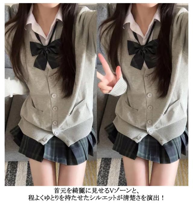 | シンプルなデザインで制服にも合わせやすいスクールカーディガン。 通学でも私服でも使えるニットカーディガン。 首元を綺麗に見せるVゾーンと、程よくゆとりを持たせたシルエットが清楚さを演出! 肌寒くなってきたこらからの季節には欠かさないアイテムです! 無地でシンプルなデザインなので、普段はもちろん色々なシーンで着用できるカーディガン! | |