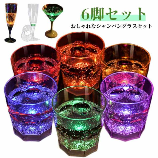 結婚式 6脚セット 210ml 150ml LED 6色 光るグラス キャンプ パーティー ウィスキーグラス プラスチック グラス センサーネオングラス セット シャンパングラス カクテルグラス LEDグラス 光る アウトドア BBQ