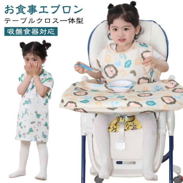 エプロン お食事エプロン 保育園 お食事 テーブルクロス一体型 お食事エプロン 取り外し可能 2WAY ロング 食べこぼし ベビーエプロン テーブルクロスカバー 防水 ノースリーブ 長袖/袖なし お食事スタイ 子供用 吸盤 お食い初め キッズ 女の子