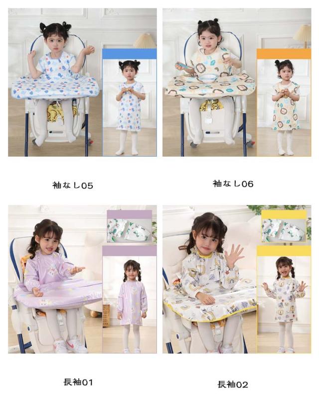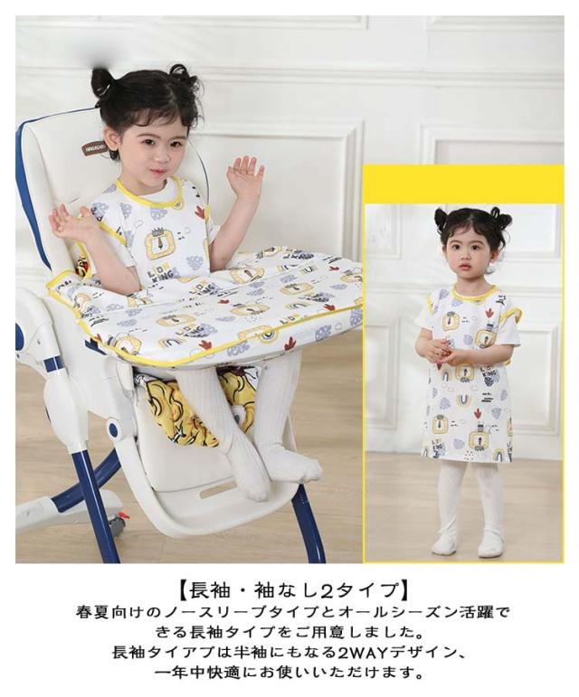 | 【お食事エプロン】 【テーブルクロス一体型】 【袖なし/長袖】 【吸盤食器対応】 テーブル一体型エプロンだから食べこぼしをしっかりキャッチ! 長袖、袖なし選べる2タイプ! 吸盤付食器も使用可能! テーブル一体型お食事エプロンはベビーチェアのテーブルまですっぽり覆うテーブル一体型のお食事エプロン。 赤ちゃんとテーブルとの間に隙間ができないから、食べ物などが落ちる心配がありません。 離乳食エプロンやお食事エプロンとして離乳食初期から5歳頃まで長く使用可能。 【長袖・袖なし2タイプ】春夏向けのノースリーブタイプとオールシーズン活躍できる長袖タイプをご用意しました。長袖タイアプは半袖にもなる2WAYデザイン、一年中快適にお使いいただけます。 【お手入れ簡単】防水素材で全身すっぽりカバーするか、ジュースや汁物をこぼしても洋服などに浸み込むのを防ぎ、全身お着替えやお洗濯の負担を軽減できます。洗濯機で丸洗いできるから、お手入れとても簡単。 | |
