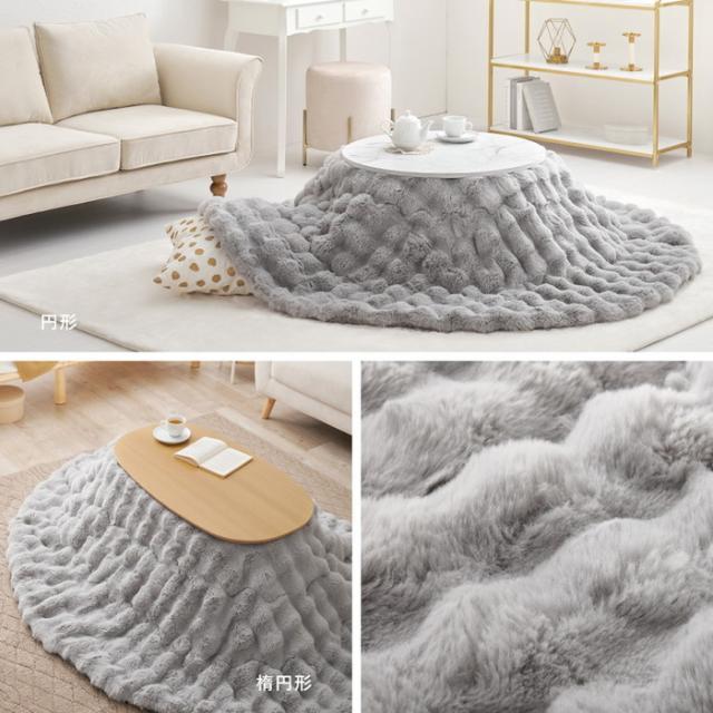 洗濯機で洗える こたつ布団 楕円形 ルナ 約210×170cm オーバル ふわふわ ポコポコ ラビットファータッチ フランネル 薄掛け 炬燵布団 hig-270611402x 店舗 カフェ ラウンジ ロビー ホテル 法人 こたつ用掛け布団 こたつ用布団 カバー 送料無料 北欧 モダン 家具 インテリ