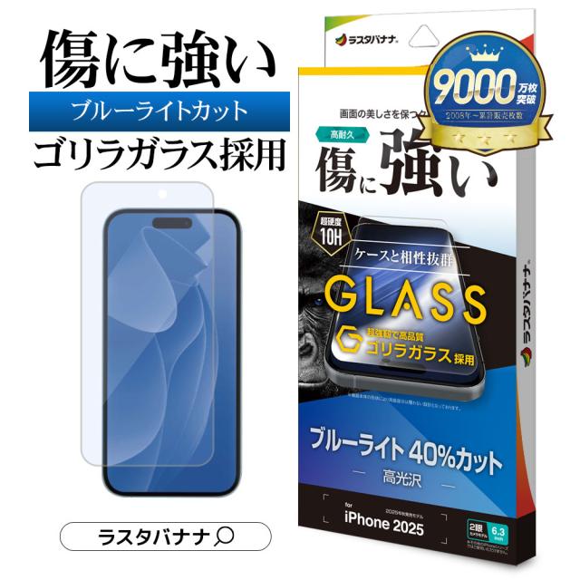 【送料無料】iPhone17 iPhone17 Pro ガラスフィルム 平面保護 ブルーライトカット 高光沢 傷に強い ゴリラガラス採用 0.33mm 硬度10H アイフォン 保護フィルム ラスタバナナ GGE4867IP5A GGE4935IP5B