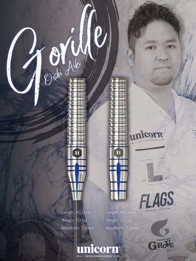 ダーツ バレル ユニコーン ゴリィ ハード 20.5g タングステン95% 大石藍貴選手(Gorille steel)