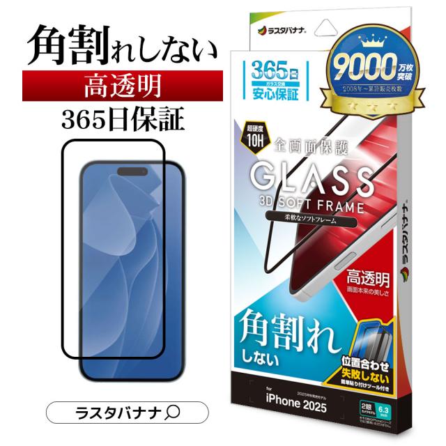 【送料無料】iPhone17 iPhone17 Pro ガラスフィルム 全面保護 高光沢 高透明 クリア 角割れしない 0.33mm 硬度10H ソフトフレーム ガイド枠付き アイフォン 保護フィルム ラスタバナナ SG4868IP5A SG4936IP5B