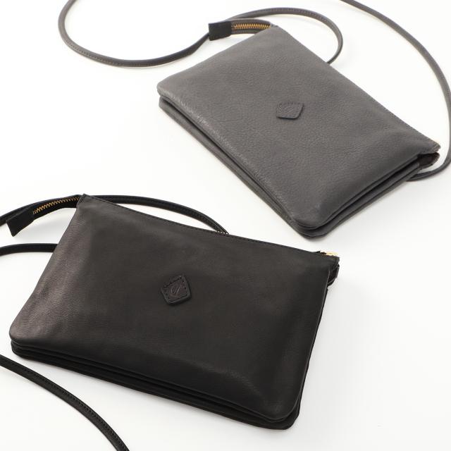 手荷物をすっきり収める。整頓上手なショルダーバッグ。鞄も小さく持ち物も少ないのに、何故か欲しい時に見つからない。そんな荷物探しの日々に終止符を打ってくれるのが、この3つの収納部屋を備えたショルダーバッグです。素材は革であることを忘れてしまうほどの軽さと心地よい手触りが特徴の、ソフトレザーをセレクト。ペタンとスリムなシルエットながら柔らかな革が荷物量に合わせてフレキシブルに膨らみ、必需品をきちんと収めてくれます。ショルダーストラップは背面のアイレット(丸穴)に通して内側で結んでいるだけなので、自在に長さ調節できるのはもちろんのこと、外してクラッチバッグやバッグインバッグとしても◎多彩な使い方ができて持つ人を選ばない汎用性の高い一品は、お揃いや兼用使いにもオススメです。