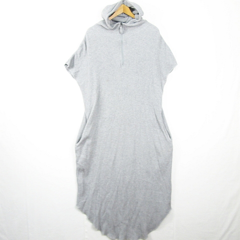 【中古】アンティカ antiqua サーマル ロング ワンピース フード付き 半袖 綿 グレー kz12568 レディース