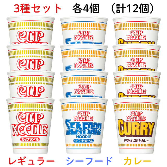 日清 カップヌードル 最短賞味期限2026年3月15日 3種セット 各4個 計12個セット レギュラー シーフード カレー 詰め合わせ まとめ買い 業務用 レギュラー味 シーフード味 カレー味 カプヌ ヌードル カップ カップ麺 最安 人気