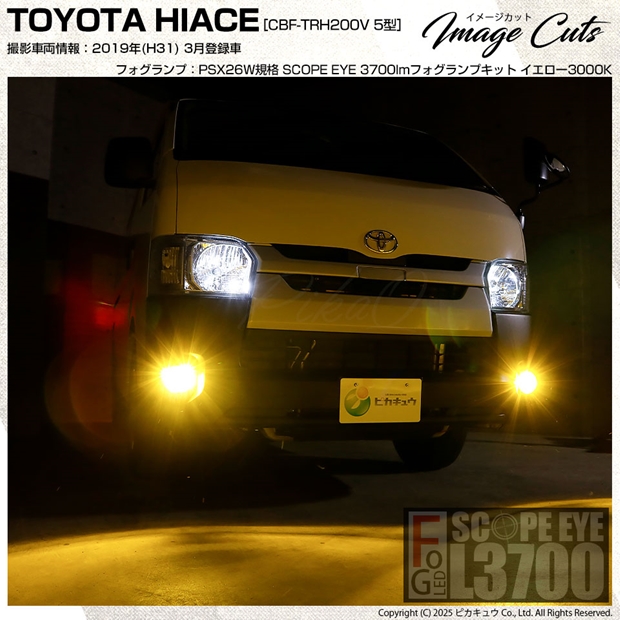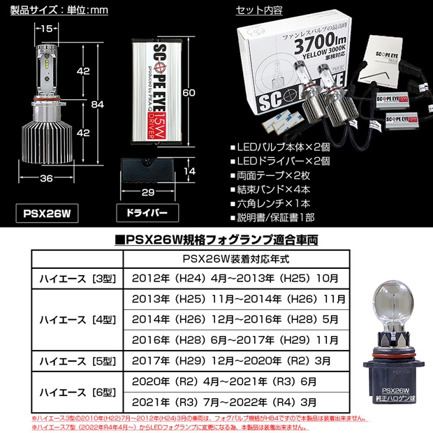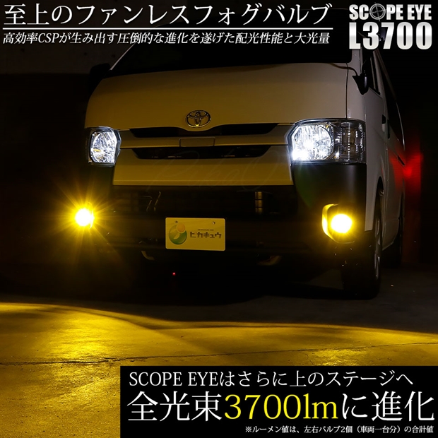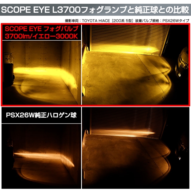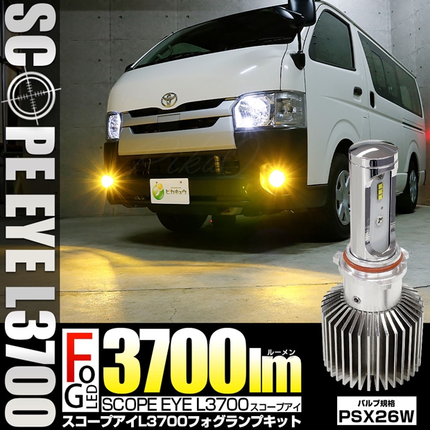 トヨタ ハイエース (200系 3/4/5/6型) PSX26W規格フォグランプ対応 LED SCOPE EYE L3700 フォグランプキット 3700lm イエロー 3000K PSX26W 18-D-1