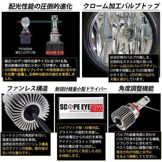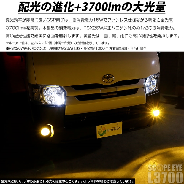 LED,ピカキュウ,LEDバルブ専門店,フォグランプPSX26W,SCOPE EYE L3700 LEDフォグランプキット,スコープアイL3700,3700lm,イエロー,3000K,フォグ 黄色,超爆光,明るい,汎用,キット,国産車,日本製の車,