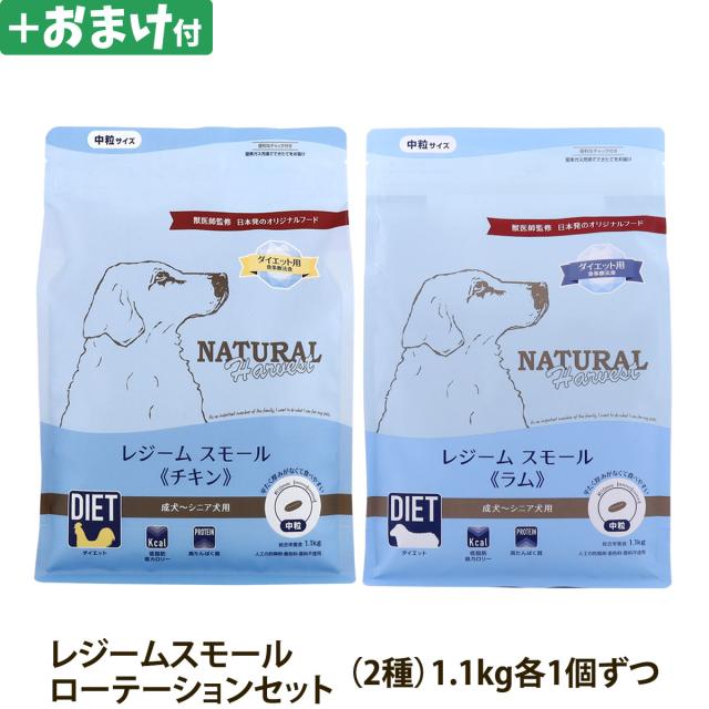 【2027年04月ロットのみ粒サイズにばらつきがあります】【沖縄以外送料無料】(選べるおまけ付き)ナチュラルハーベスト レジームスモール ローテーションセット1(各1袋ずつ2袋セット)(1.1kg×2)中粒 小粒 療法食 ダイエット 減量用 体重管理 低脂肪 ドッグフード