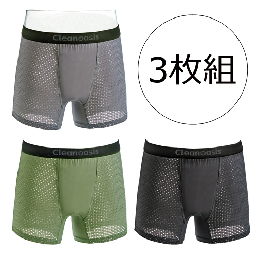 超爽快メッシュ安心パンツ 3枚組 ボクサーパンツ パンツ 下着 吸水 ショーツ 尿漏れ 軽失禁 対策 メンズ 紳士 シニア 男性 大人 グレー グリーン ブラック 涼しい メッシュ 肌着 無地 シンプル シニアファッション 40代 50代 60代 70代 80代 90代 父の日 お父さん おじいちゃん 春物 夏物 春夏