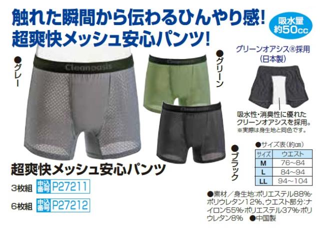 超爽快メッシュ安心パンツ 3枚組 ボクサーパンツ パンツ 下着 吸水 ショーツ 尿漏れ 軽失禁 対策 メンズ 紳士 シニア 男性 大人 グレー グリーン ブラック 涼しい メッシュ 肌着 無地 シンプル ファッション 40代 50代 60代 70代 80代 90代 父の日 お父さん 春夏 id p27211