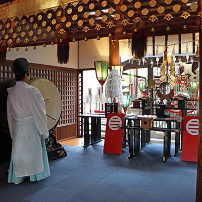 ![]() | 献饌の儀 皆様に頒布致しますお守りをご神前にお供えします。 |