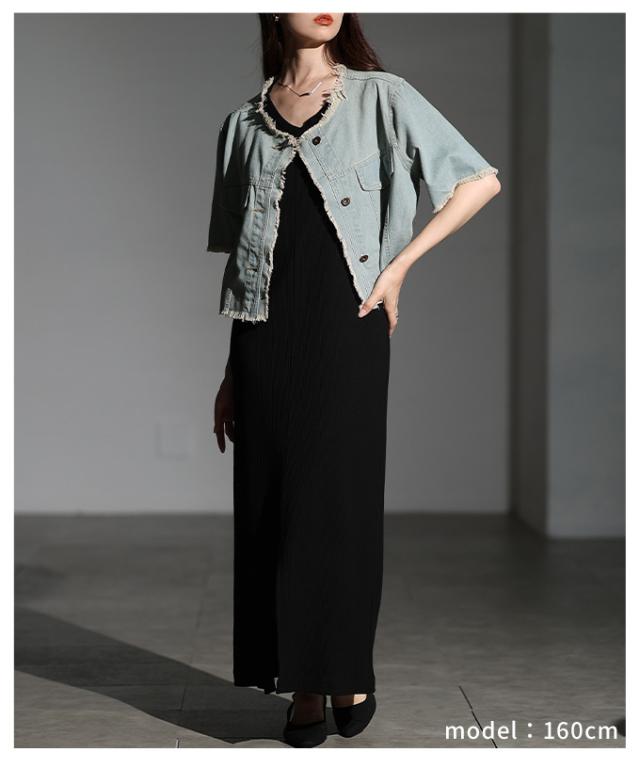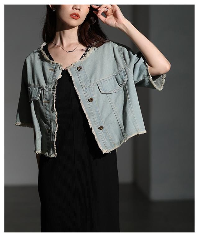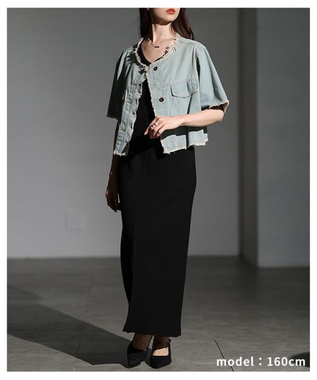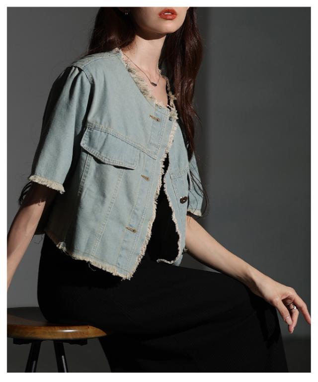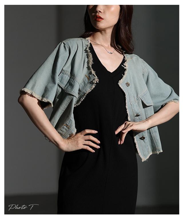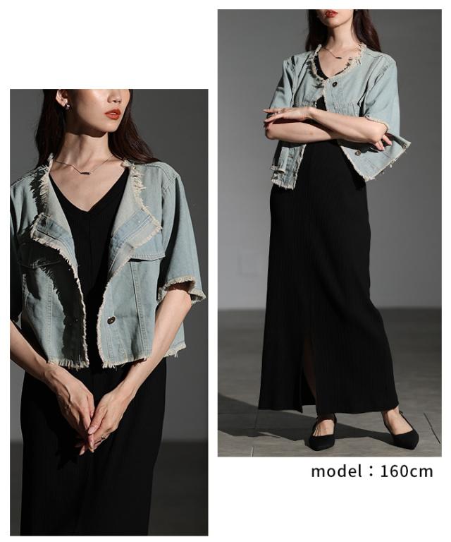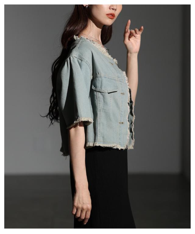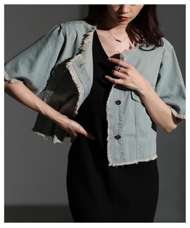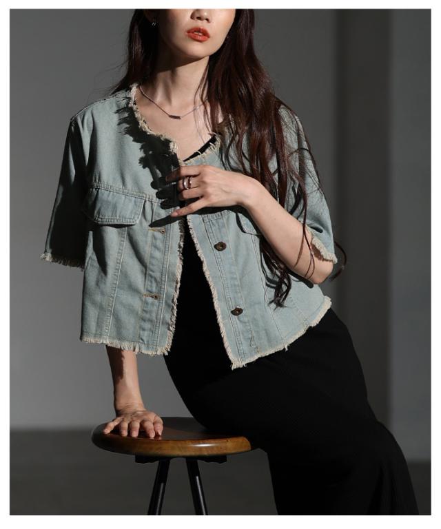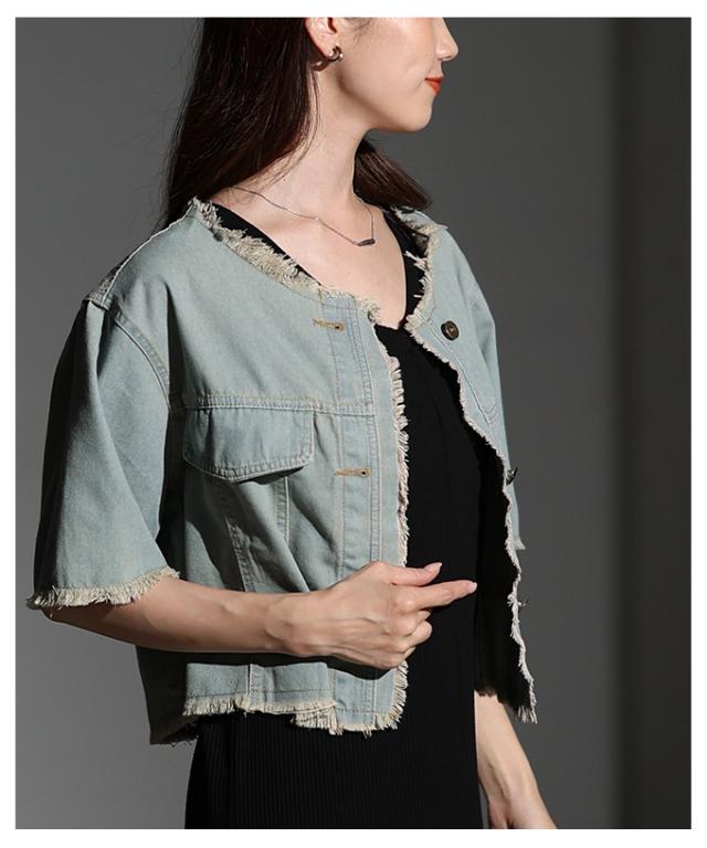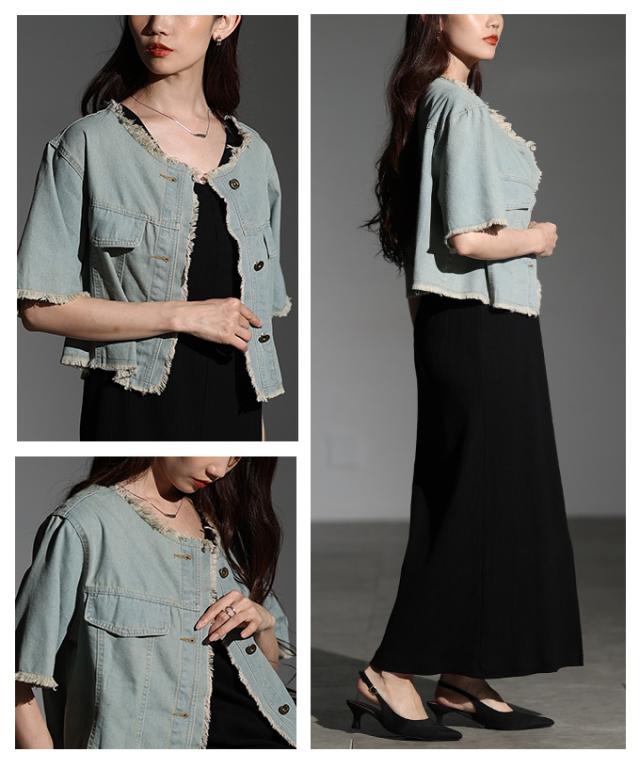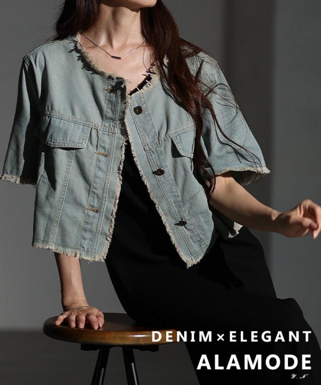 春新作 大人が似合うエレガントフリンジデニムジャケット レディース ファッション アウター ジャケット 羽織り ブルー 夏服 大人可愛い 20代 30代 40代 レディースファッション カジュアル 体型カバー おしゃれ きれいめ ママ サワアラモード sawaalamode mode-10030