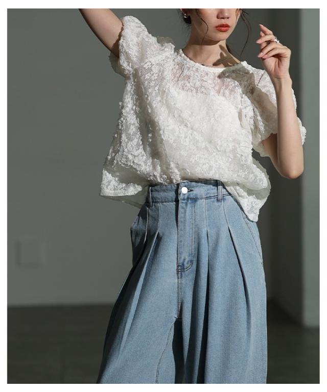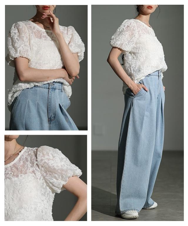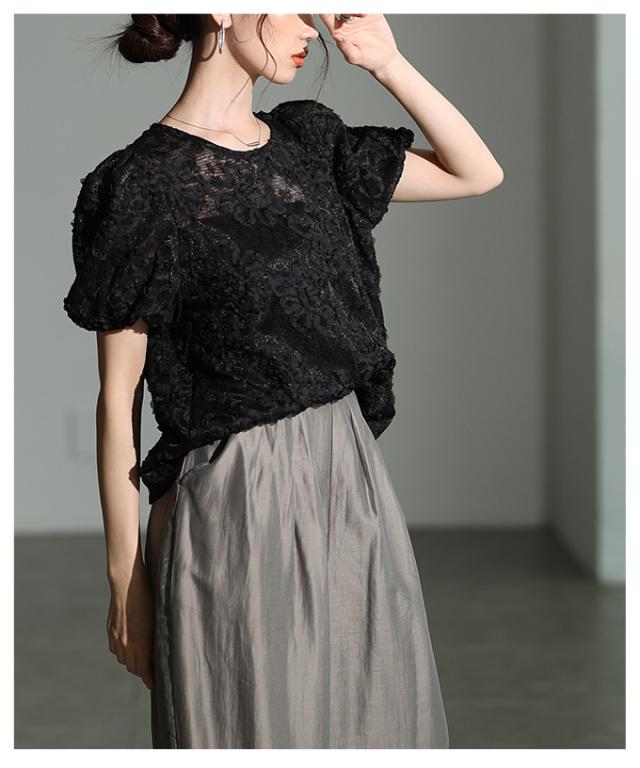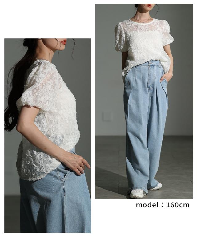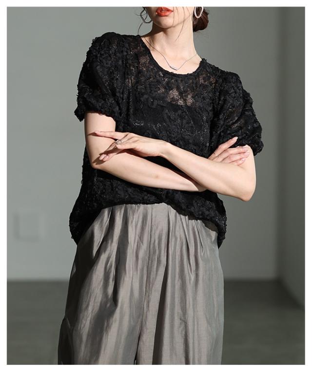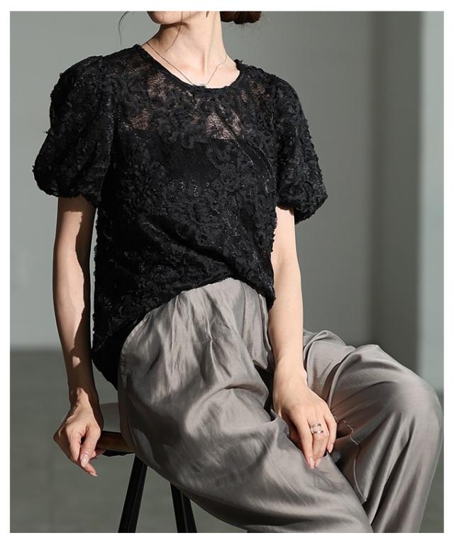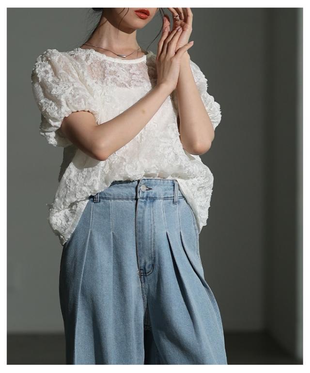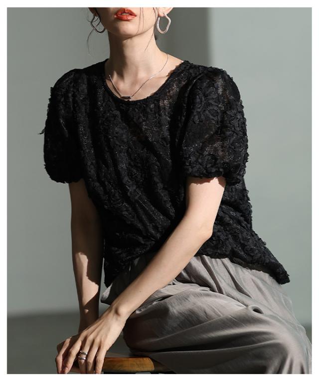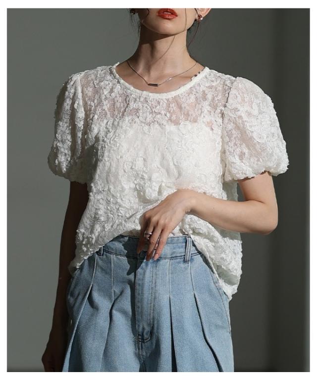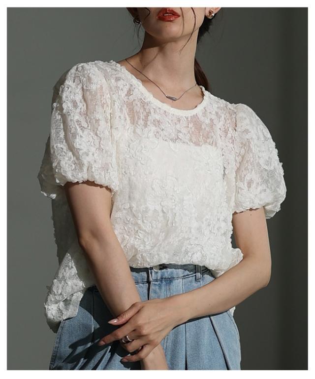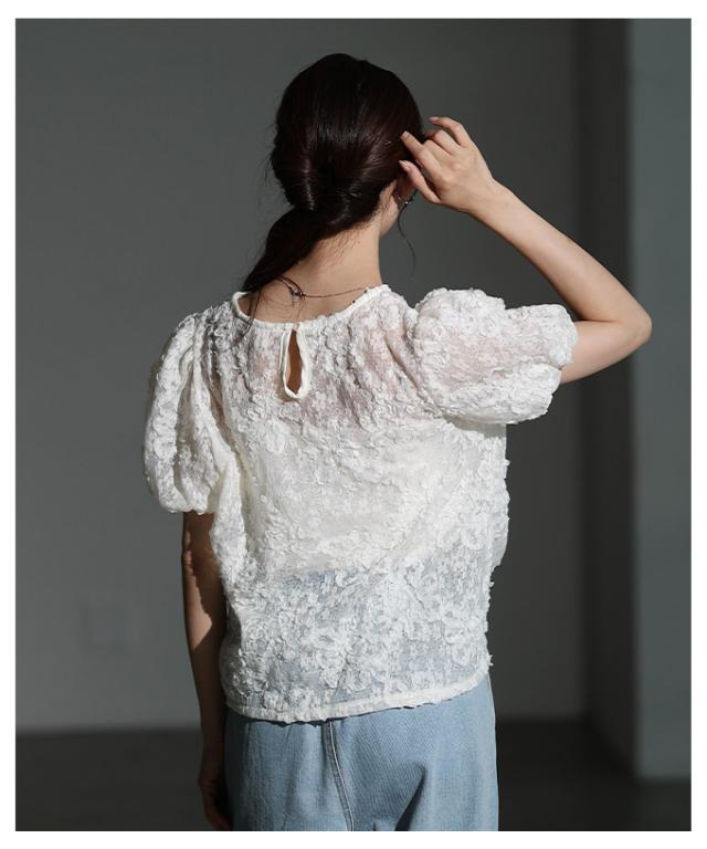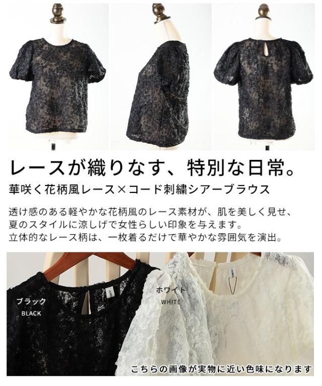 春新作 日常を彩る花柄風コード刺繍レースシアーブラウス レディース ファッション トップス ブラウス プルオーバー 花柄 レース コード刺繍 パフスリーブ 夏 30代 40代 50代 60代 サワアラモード sawaalamode otona 大人 cawaii 可愛い 洋服 かわいい服 mode-10044