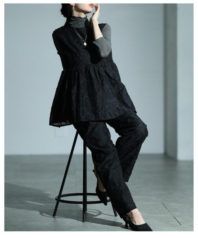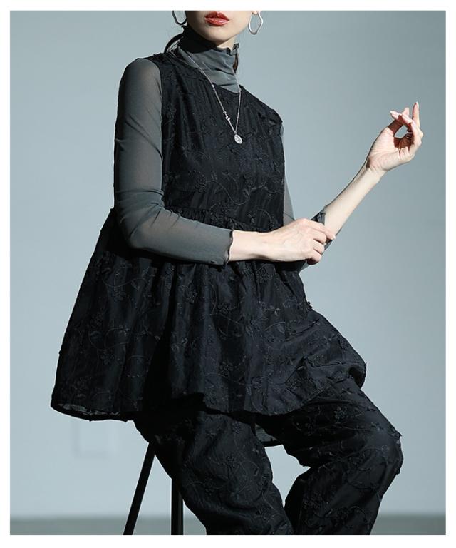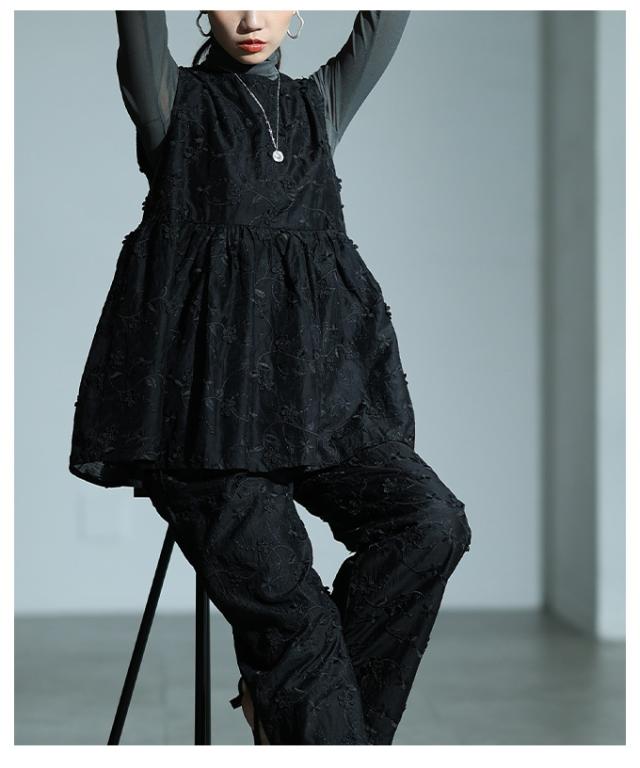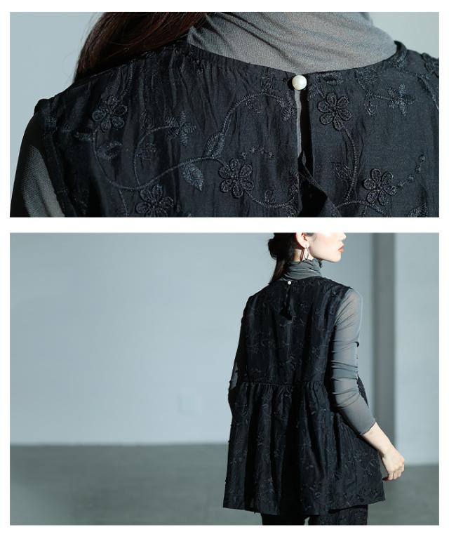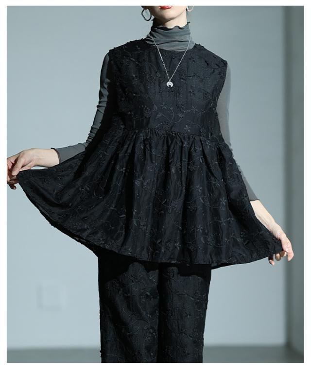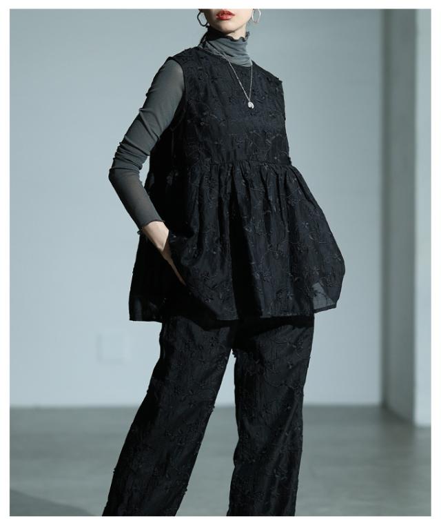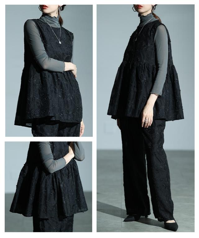 春新作 華やぐ上品さ重なる立体花刺繍オーガンジーペプラムフレアトップス レディース ファッション トップス 花柄 刺繍 ペプラム フレア ノースリーブ 黒 30代 40代 50代 60代 サワアラモード sawaalamode otona 大人 cawaii 可愛い 洋服 かわいい服 almam-1776