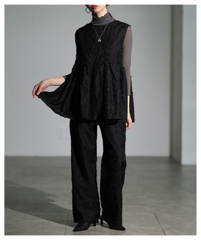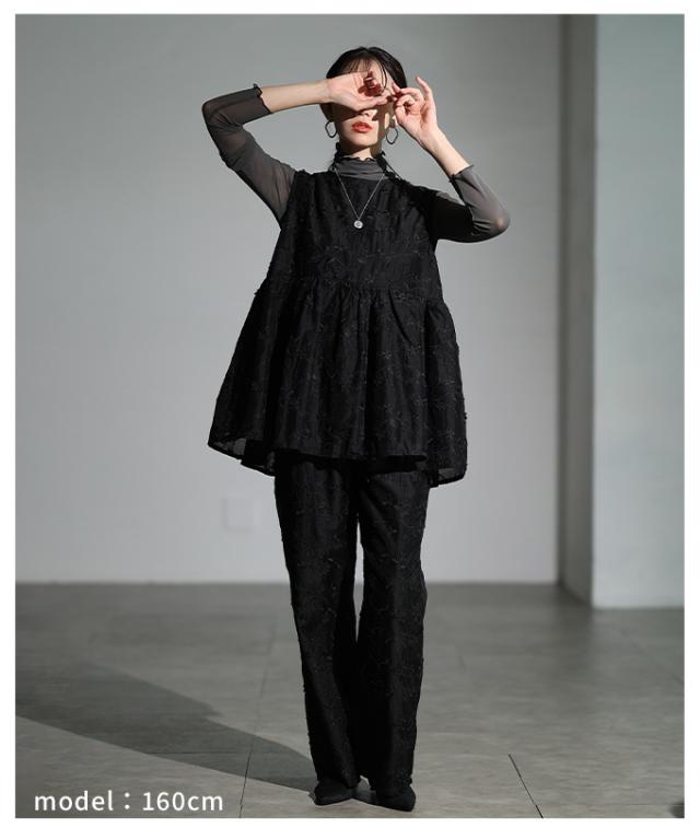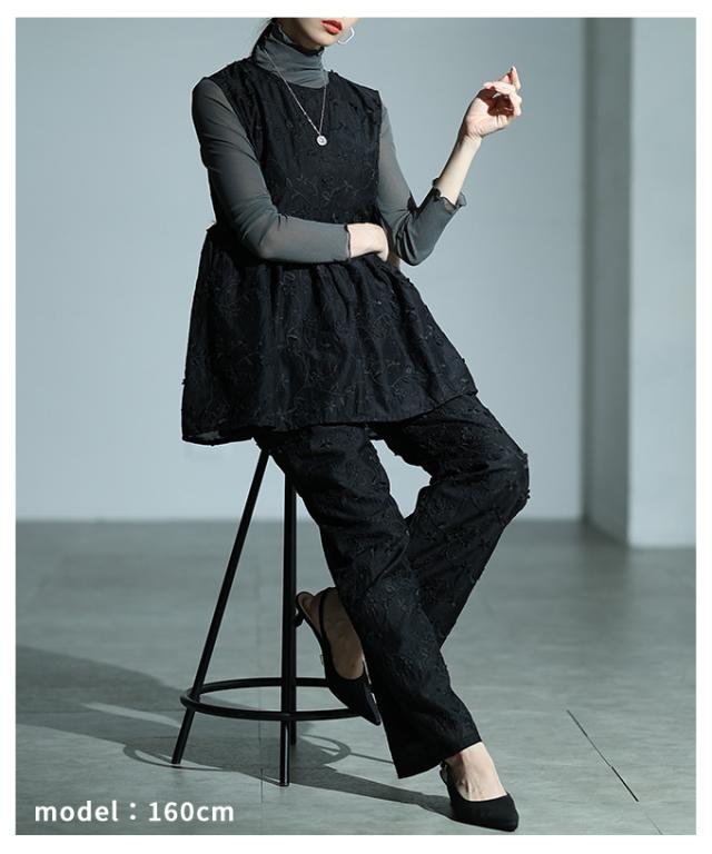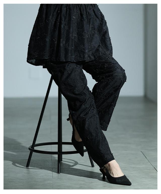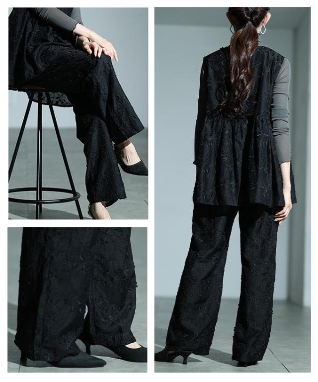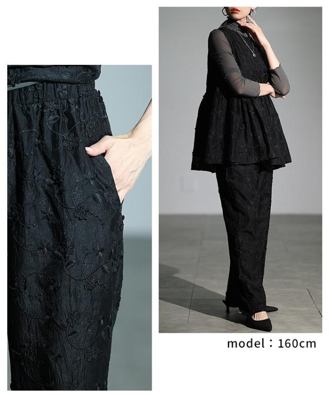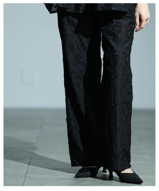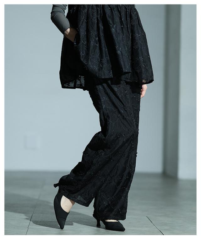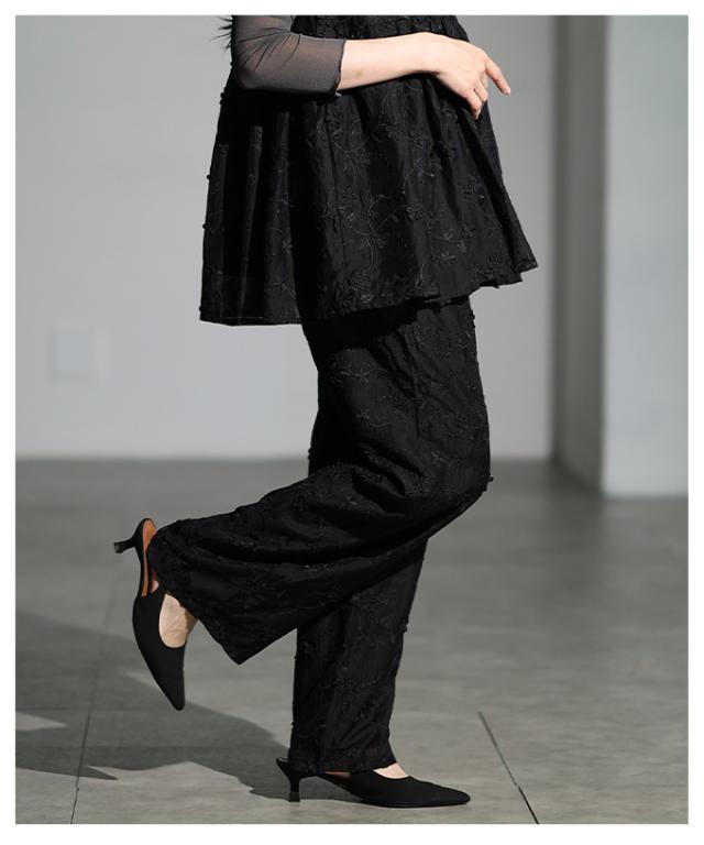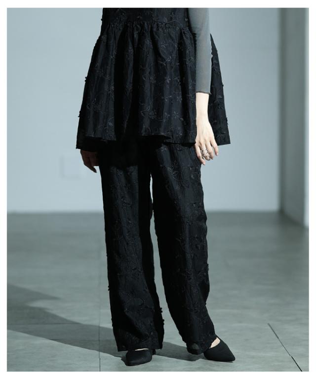 商品名: 立体花刺繍オーガンジーセミワイドパンツ