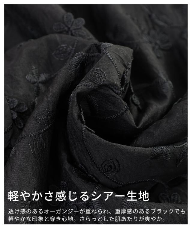 特徴: 花柄 刺繍 立体 ウエストゴム セミワイド シアー レイヤード