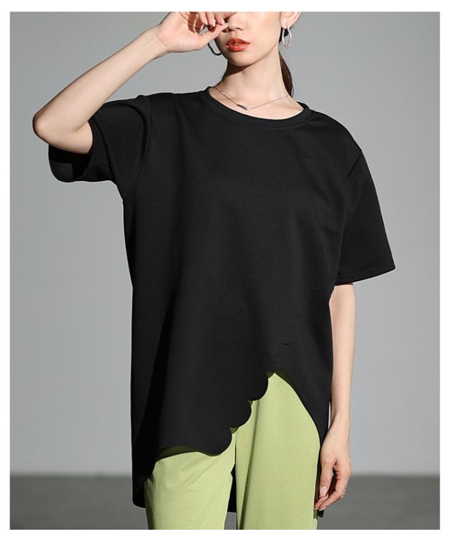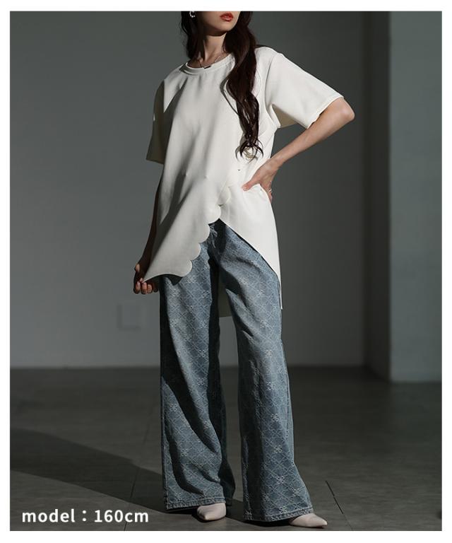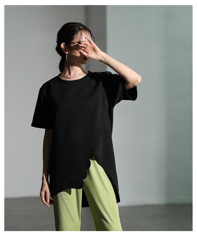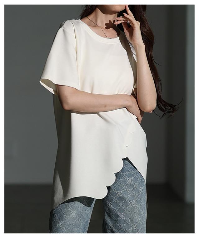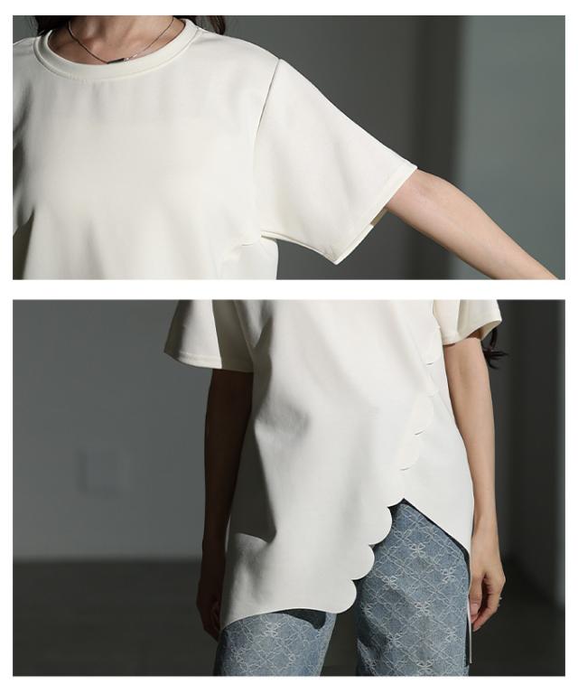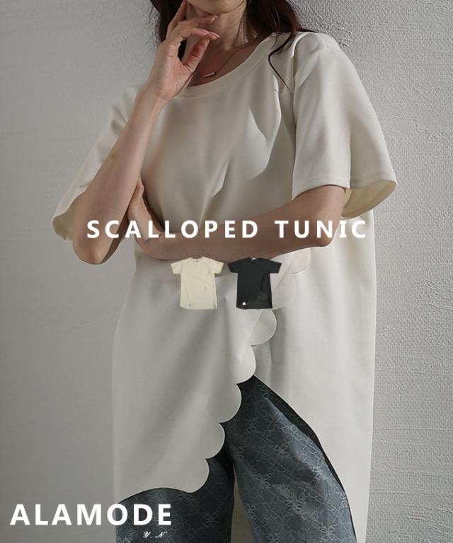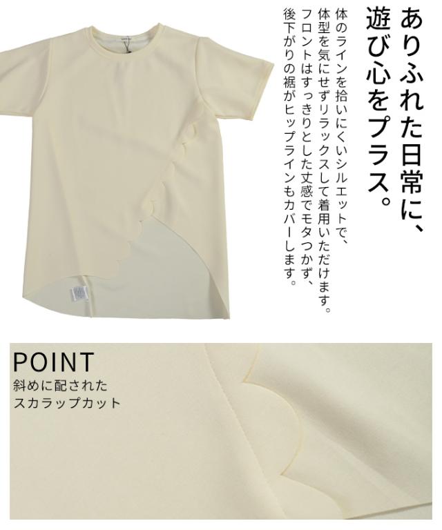 春新作 スカラップカットアシンメトリーカットソーチュニック レディース ファッション チュニック トップス カットソー スカラップ アシンメトリー 半袖 夏 30代 40代 50代 60代 サワアラモード sawaalamode otona 大人 cawaii 可愛い 洋服 かわいい服 mode-10041