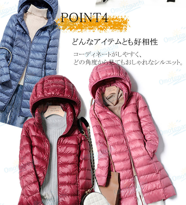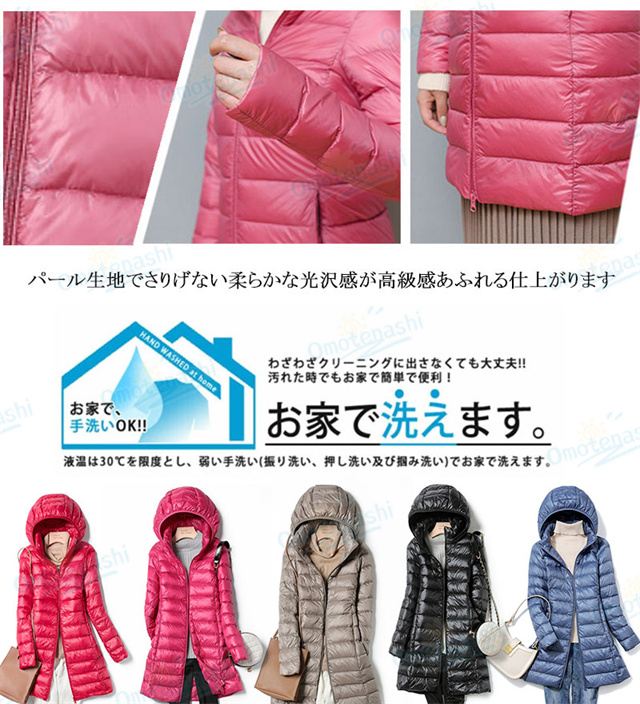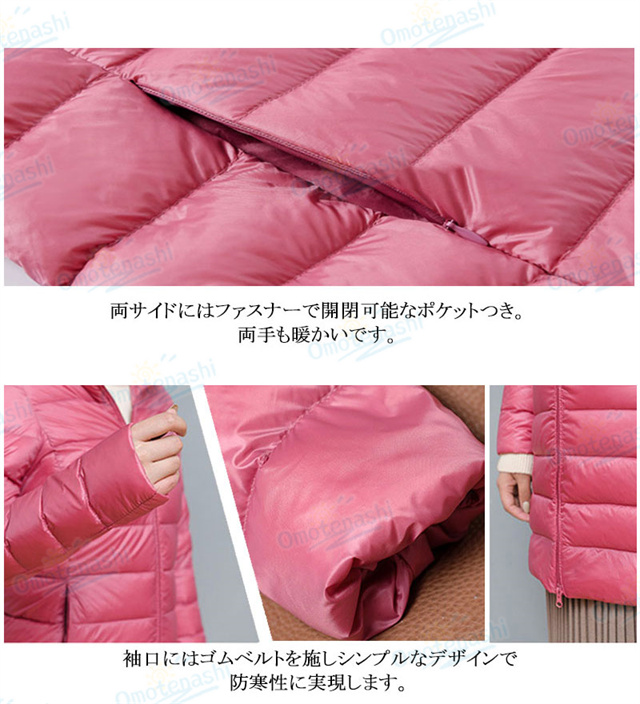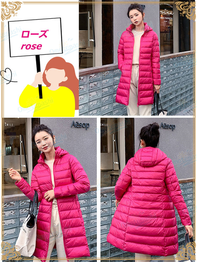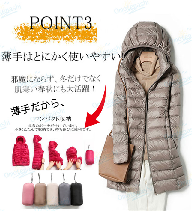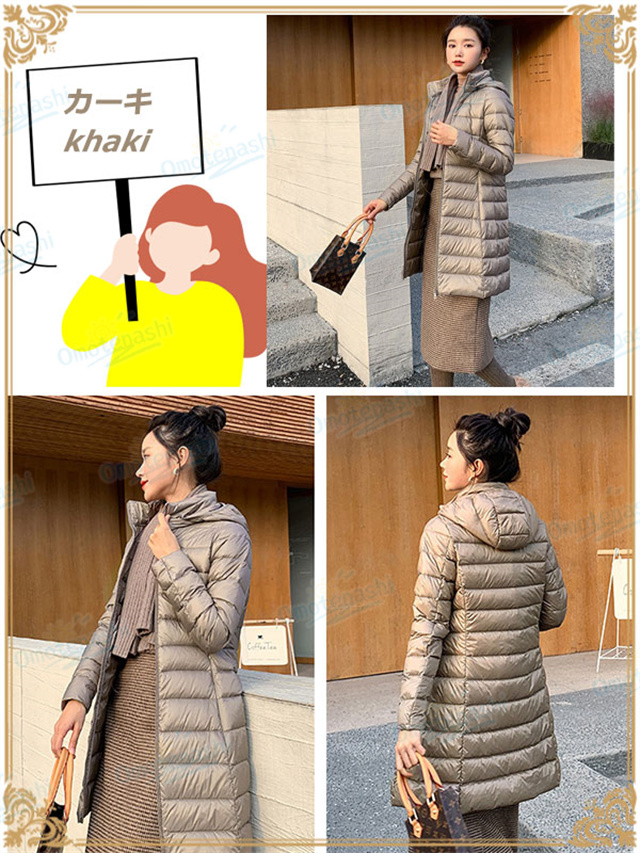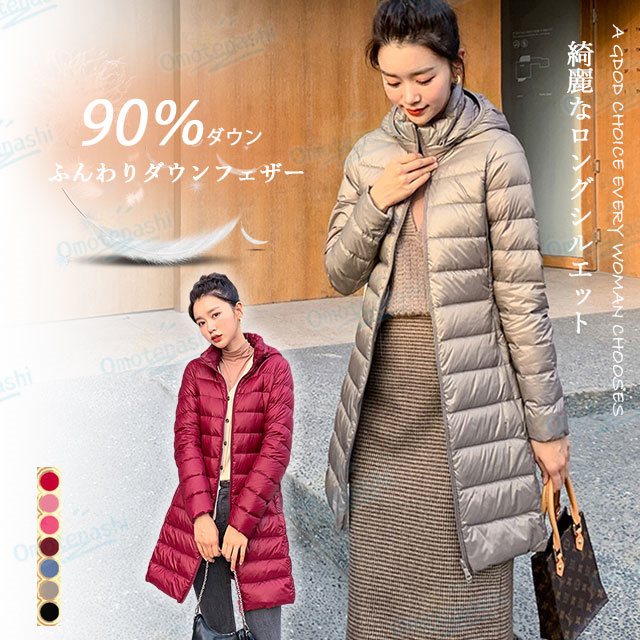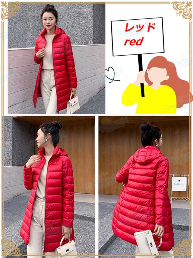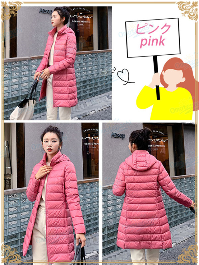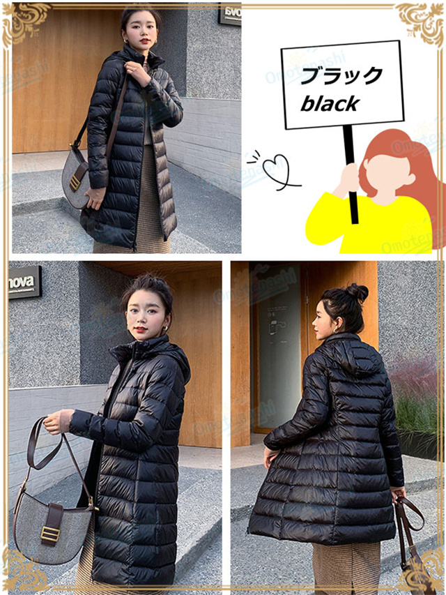 ダウンジャケット レディース 収納付き 婦人服 ダウンジャケット ロン丈 軽量 薄型 ダウンコート フード付き 冬物 あたたっか ダウン アウター 保温 ビジネス 防風防寒 ふわふわ 無地 撥水 ライトダウン オシャレ 通勤 OL 細身 薄手 7色 M-4XL