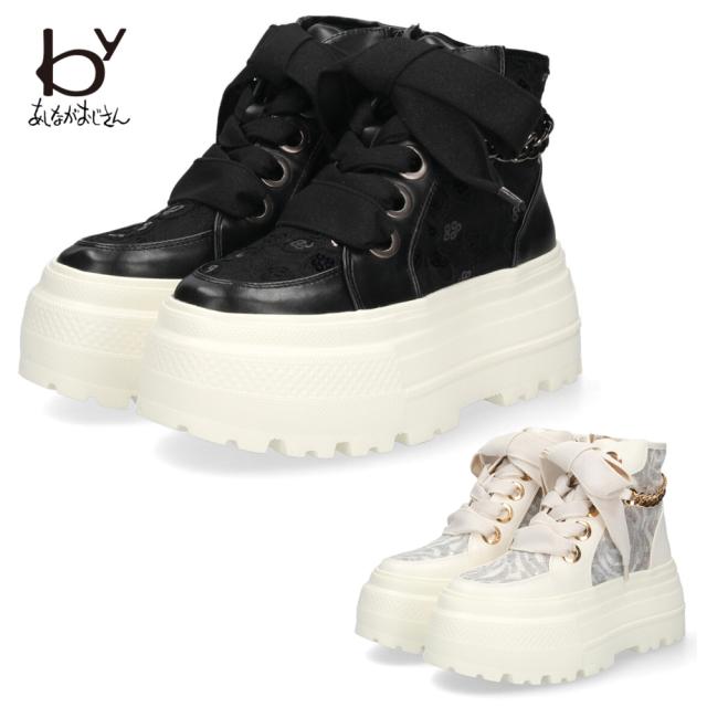by あしながおじさん レディース スニーカー 厚底スニーカー ビッグリボン B8510127 ハイカット 靴 レースアップ 厚底 ファスナー