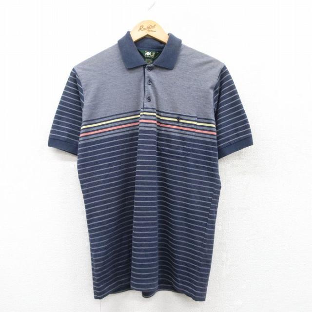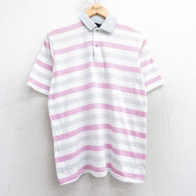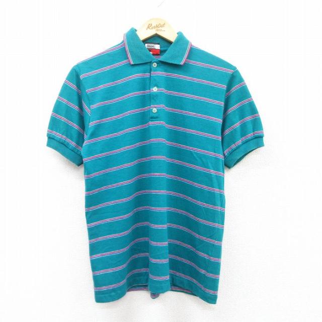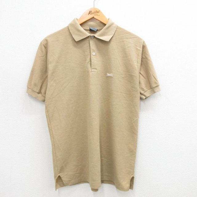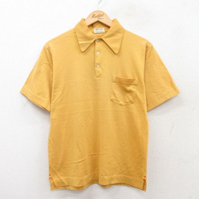 古着 半袖 ポロ シャツ メンズ 80年代 80s 鹿の子 薄オレンジ Mサイズ 中古 トップス 中古 古着