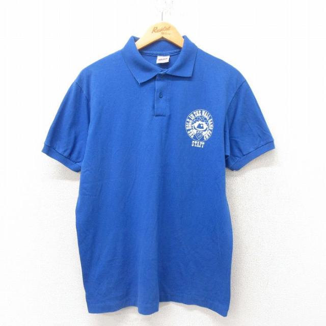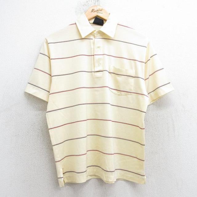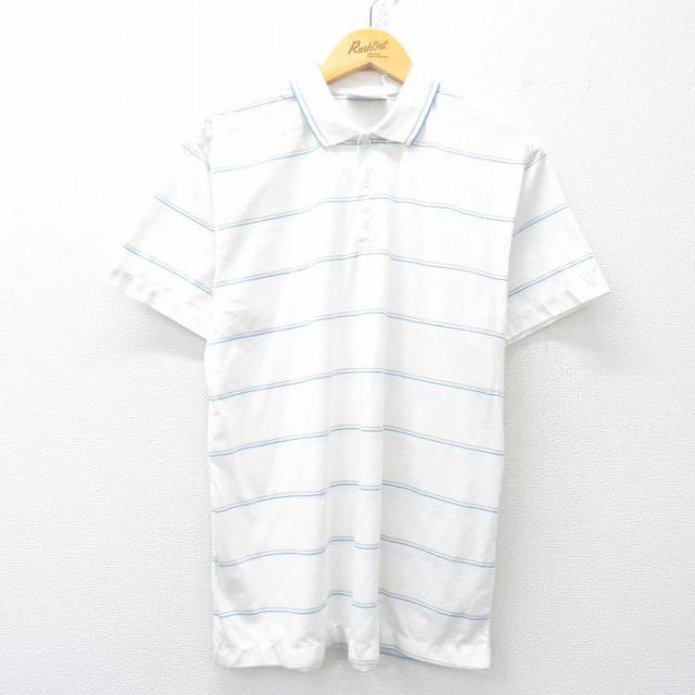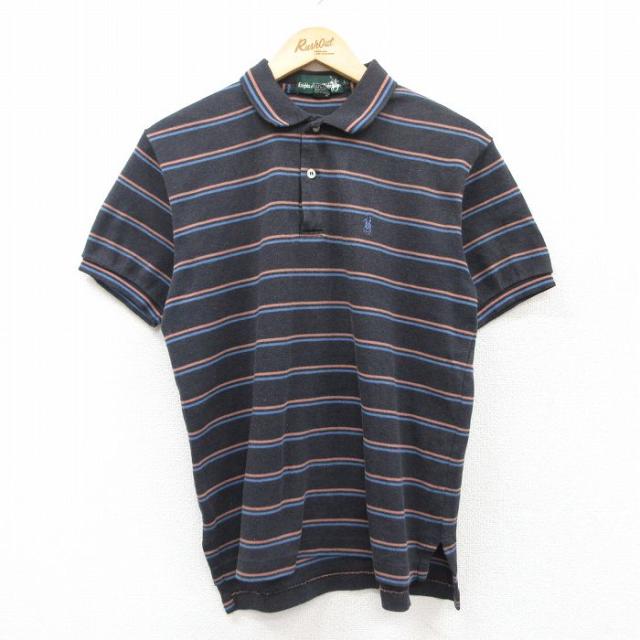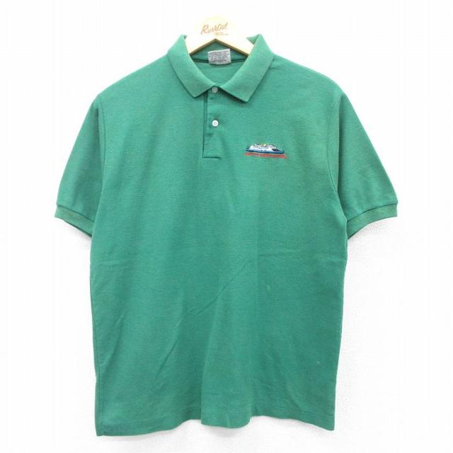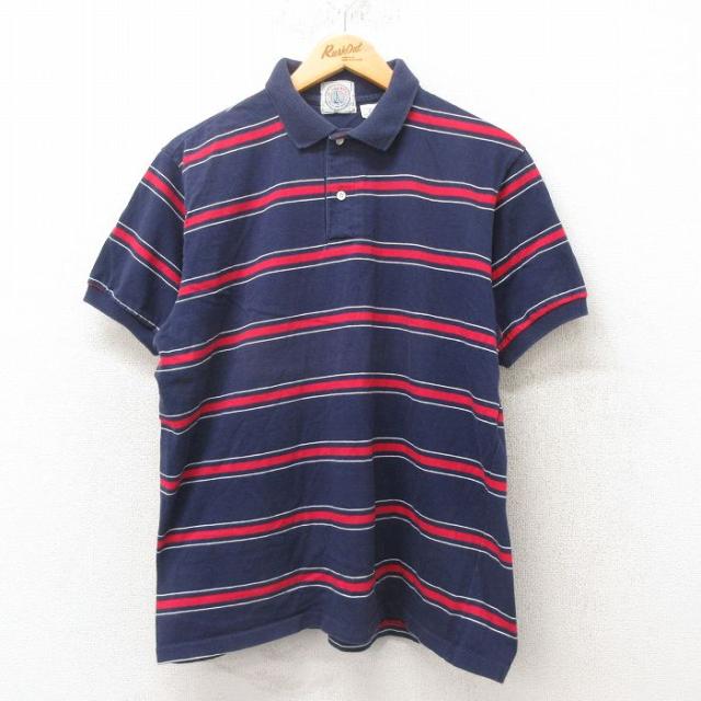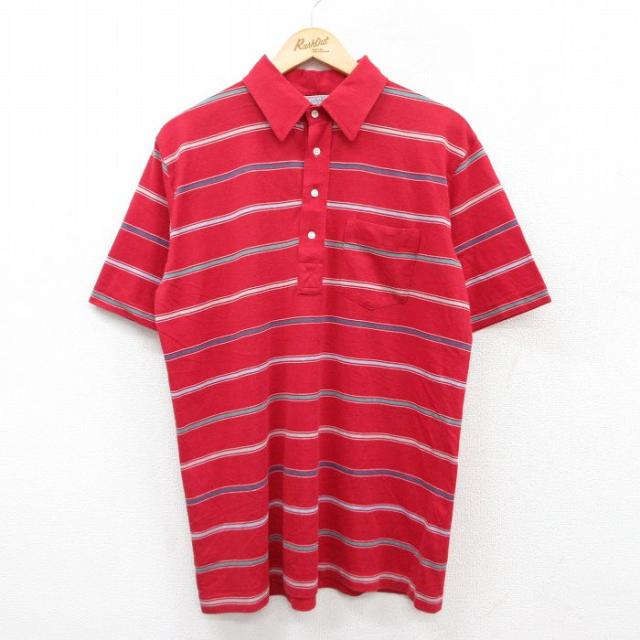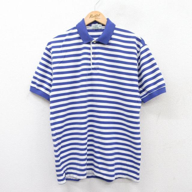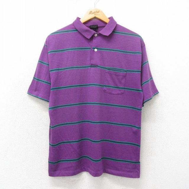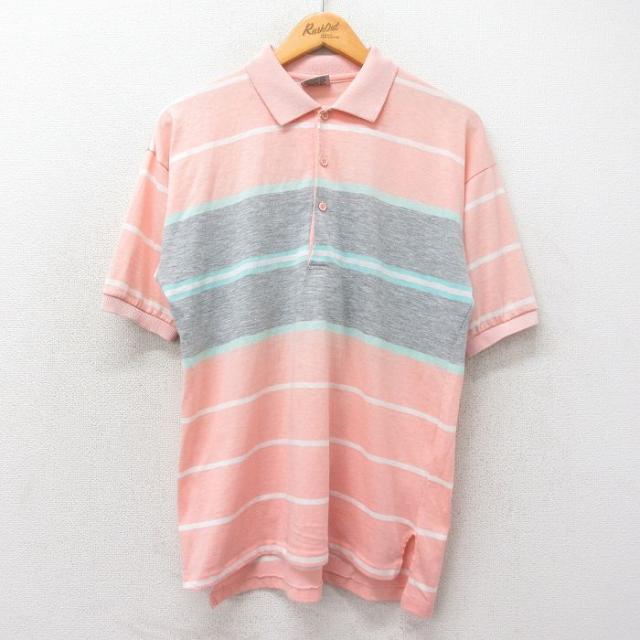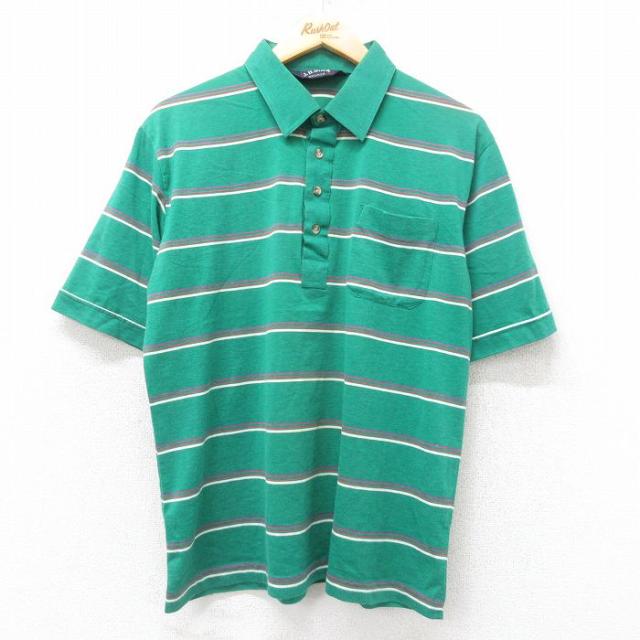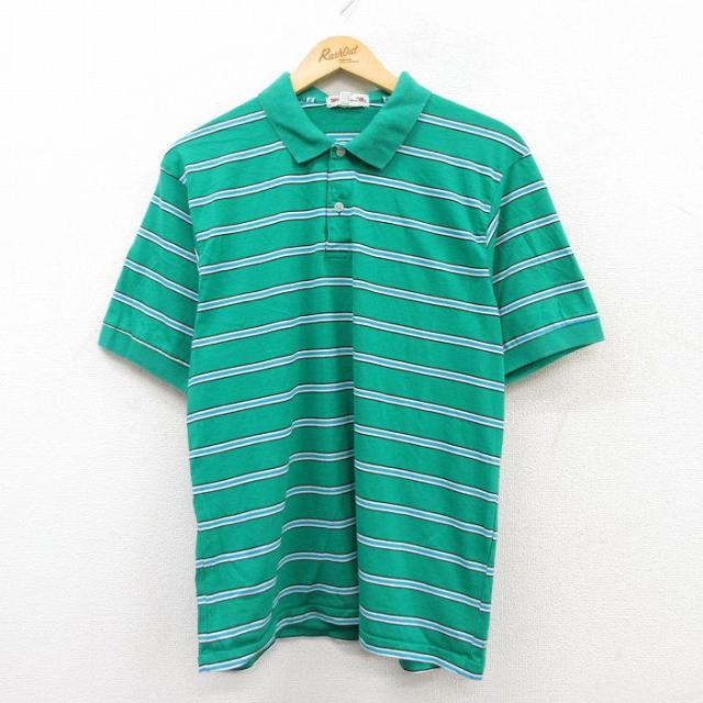 古着 半袖 ポロ シャツ メンズ 90年代 90s USA製 青緑他 ボーダー Lサイズ 中古 トップス 中古 古着