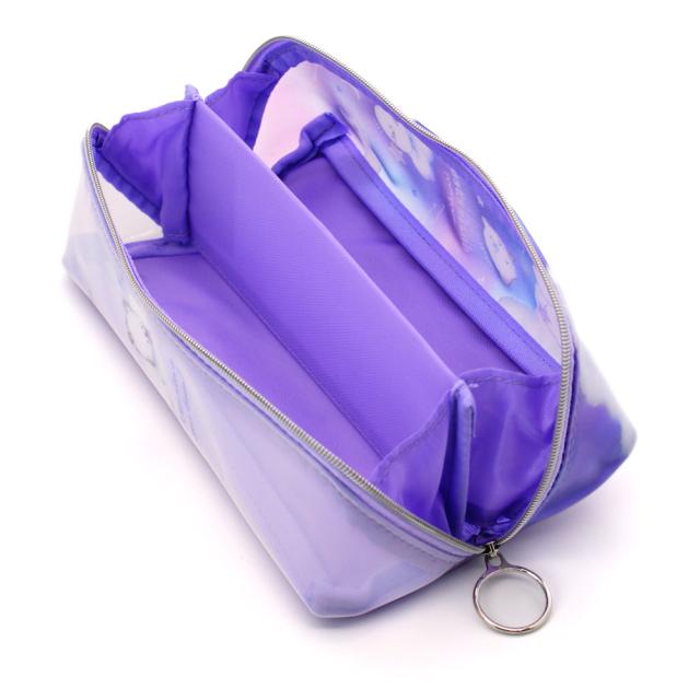 半透明の紫系カラーがやさしく光を通し、中身が見やすく使いやすい仕様です。