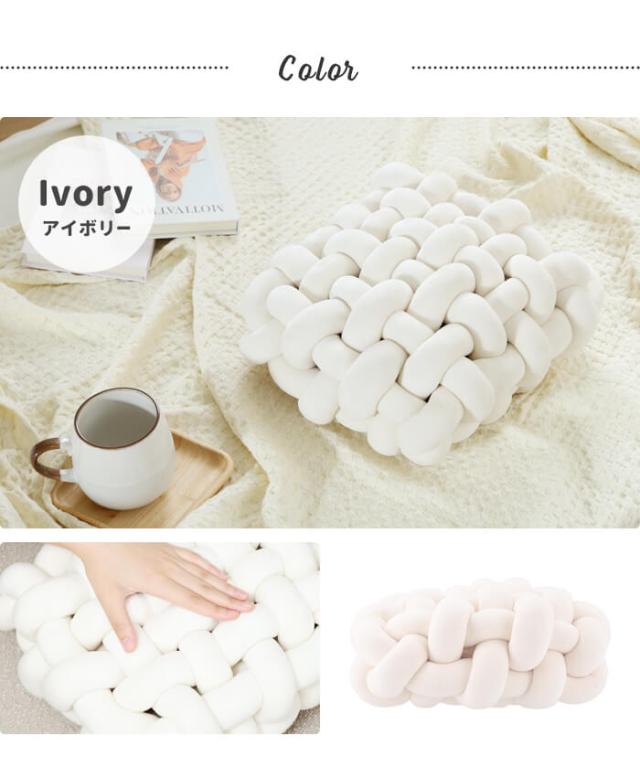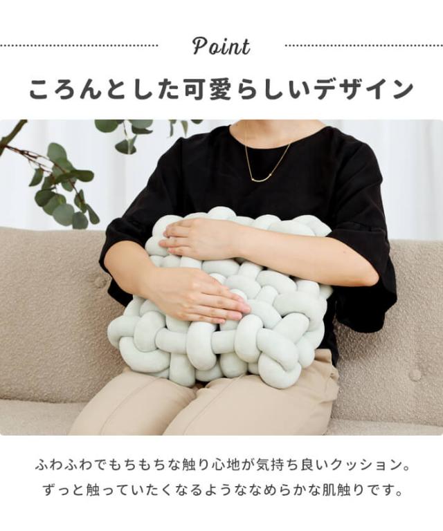 【値下げ】クッション チャンキーニット スクエア ふわふわ 結び目 フロアクッション 抱き枕 ソファークッション ソファー枕 背もたれ 和室 北欧 おしゃれ かわいい ソファー 座椅子 チェアー 背もたれ テレワーク ホームインテリア 編み物