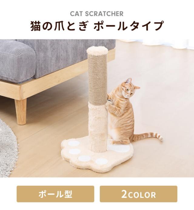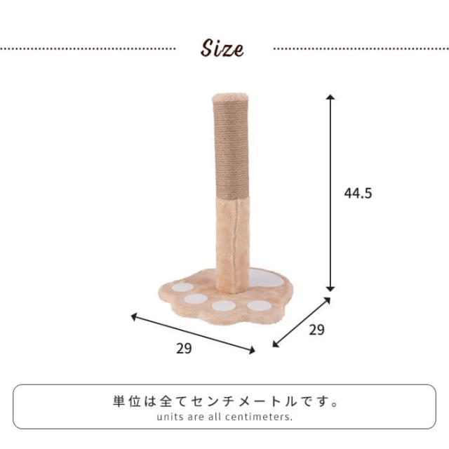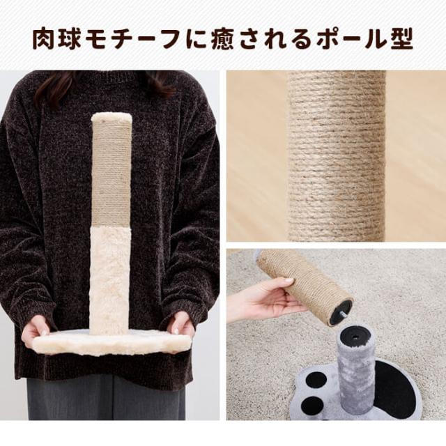 | 肉球モチーフに癒されるポール型爪とぎ。 麻ひも巻きで爪が引っかかりやすいので思う存分カリカリできます。 直径約30cmと小型なので、場所を取らず省スペースで利用できます。 |