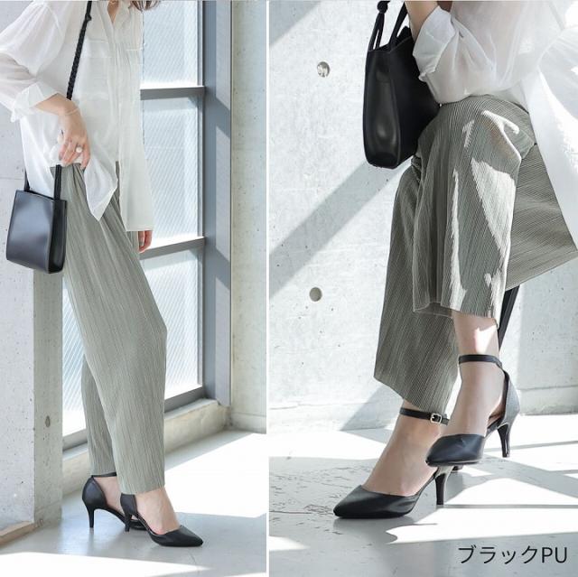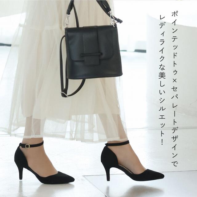 【MAX20%OFFクーポン】 パンプス 痛くない 歩きやすい ヒール セパレート ポインテッドトゥ ストラップ 25.5 21.5 ブラック 黒 通勤 オフィス 結婚式 V3902AL ZOZO 結婚式 バレンタイン