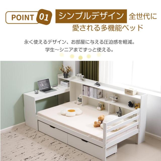 【シンプルデザイン全世代に 愛される多機能ベッド】永く使えるデザイン、お部屋に与える圧迫感を軽減。 学生~シニアまでずっと使える。