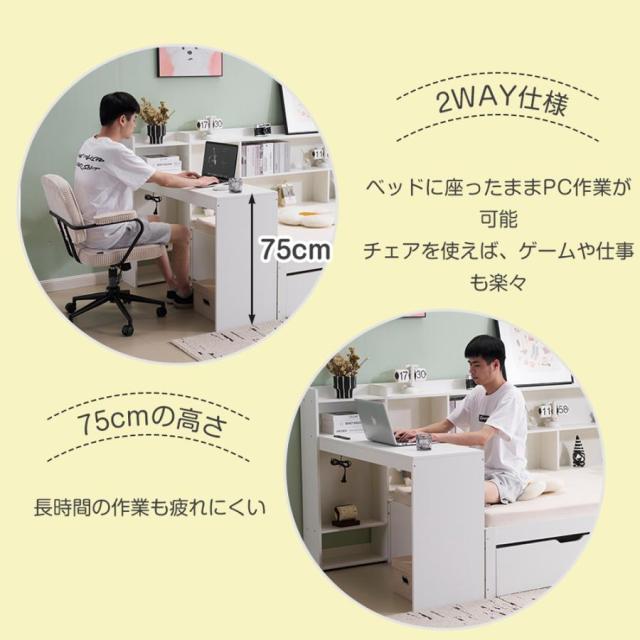 【2WAY仕様】ベッドに座ったままPC作業が可能 チェアを使えば、ゲームや仕事も楽々 75cmの高さ 長時間の作業も疲れにくい