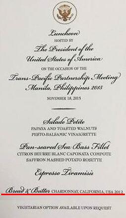 そのブレッド&バターが2015年11月に開催されたオバマ前大統領主催のTPPランチミーティングにて当時全く無名であったこちらのシャルドネ(’12年)がオンリストされました。